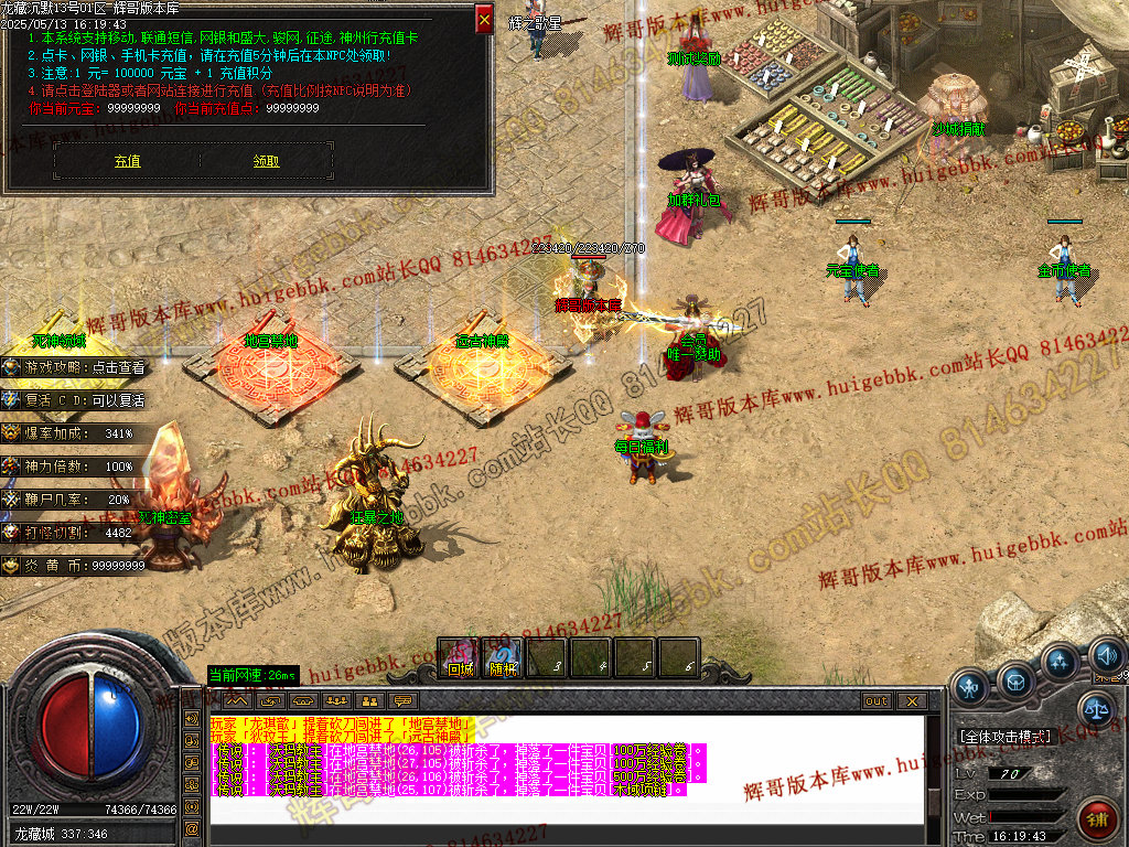 至于元宝,经玩家测试【二大路一天打5000万】【 三大陆一天打一个亿】 轻轻松松,中后期元宝好打请勿充值,土豪随意