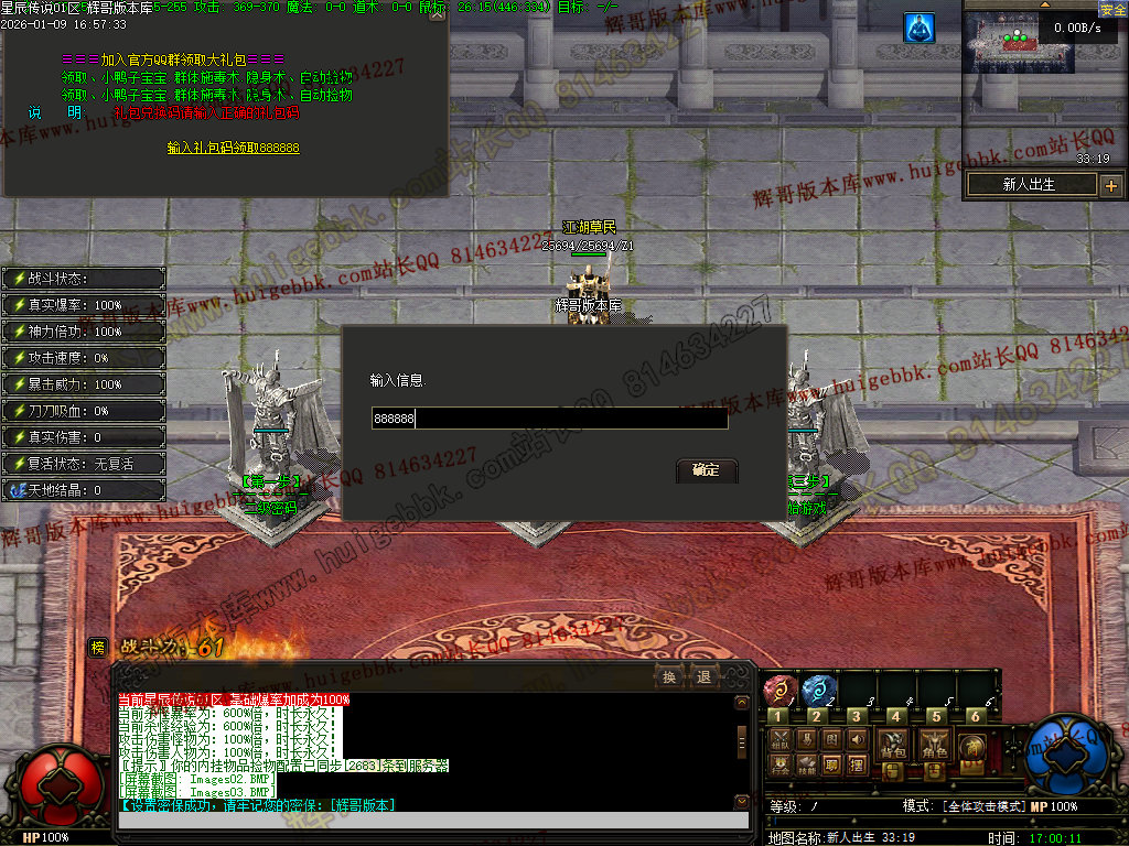 狂暴规则:攻沙期间[区域内]不消失,被怪物杀死不消失——————————————————————————————————沙城捐献:属性:爆率100%属性:伤害10%属性:吸血10%激活:自动回收功能——————————————————————————————————福利【主打一个良心】:免费领取狮子吼[全屏引怪]效果:嘲讽引怪范围20x20.自带红绿毒.