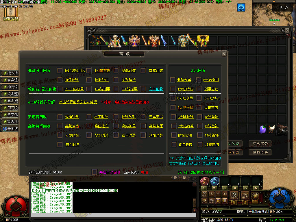 26.综合服务内,添加十大陆-分解 三种不同自动回收勾选,并添加对应自动回收-分解脚本;
