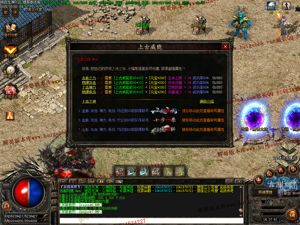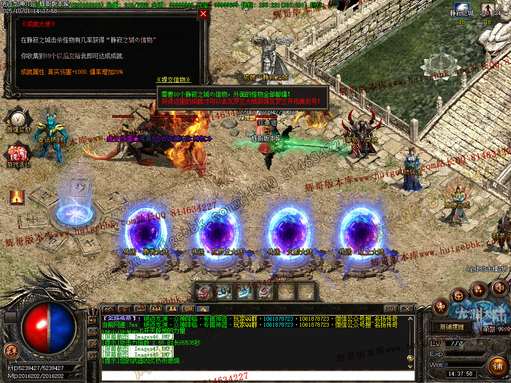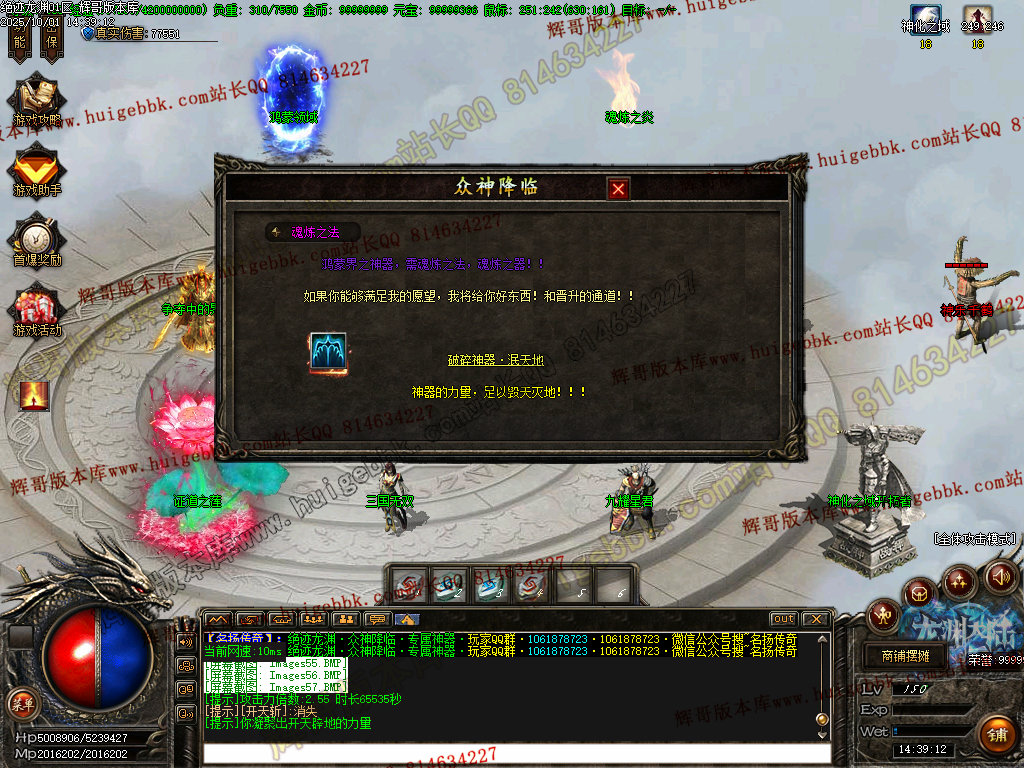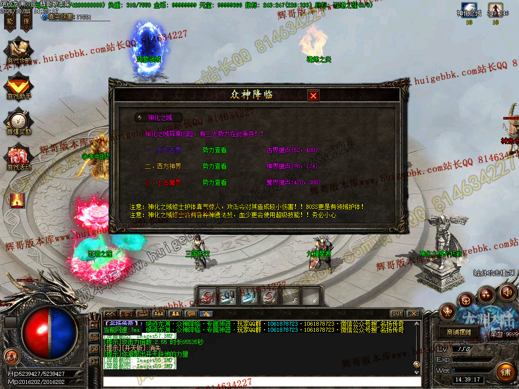 鸿蒙灵域(三界之内杀怪出通道,全服提示):第一季终极地图 刷新所有神化BOSS和无数人形怪物! 掉落终极武器,衣服,生肖类