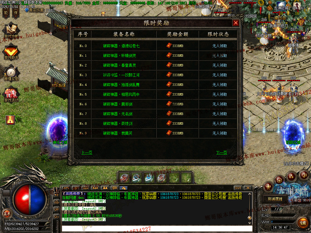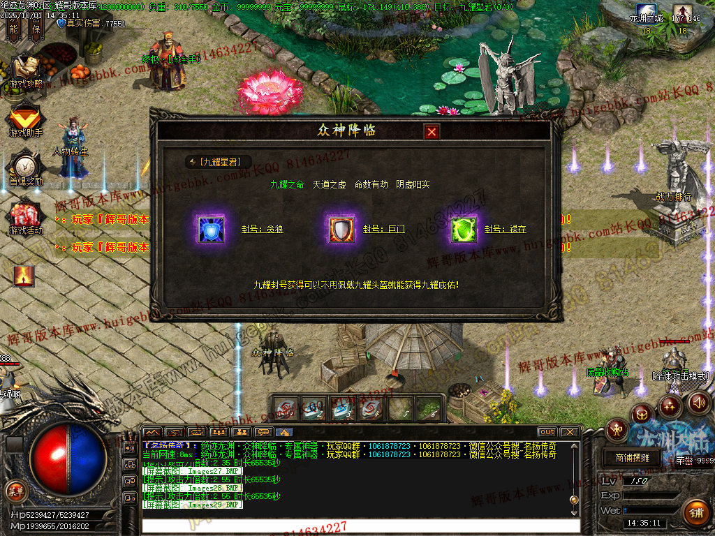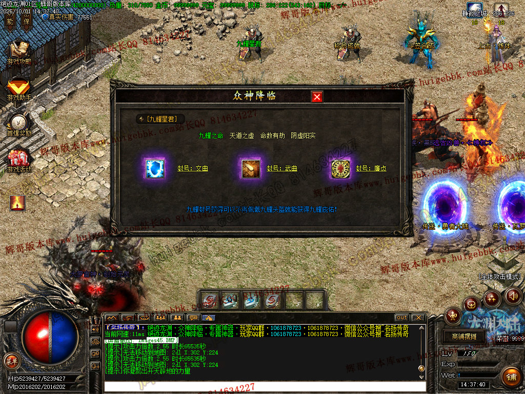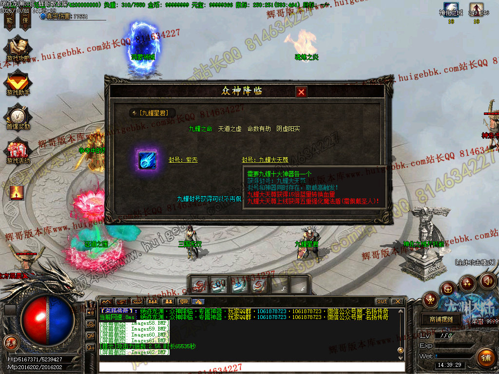 鸿蒙灵域(三界之内杀怪出通道,全服提示):第一季终极地图 刷新所有神化BOSS和无数人形怪物! 掉落终极武器,衣服,生肖类