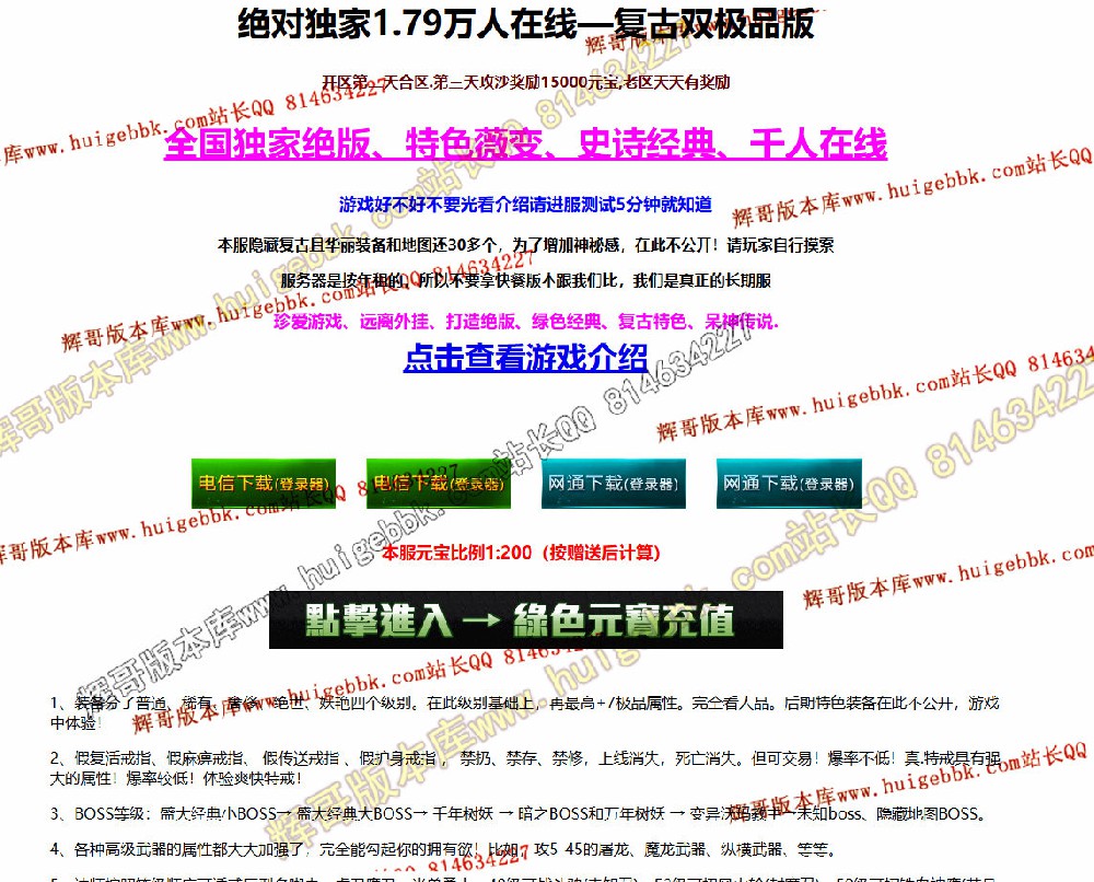 如果发现影响开区的大问题,可联系站长进行免费修复,细节问题自己处理不负责细节问题,