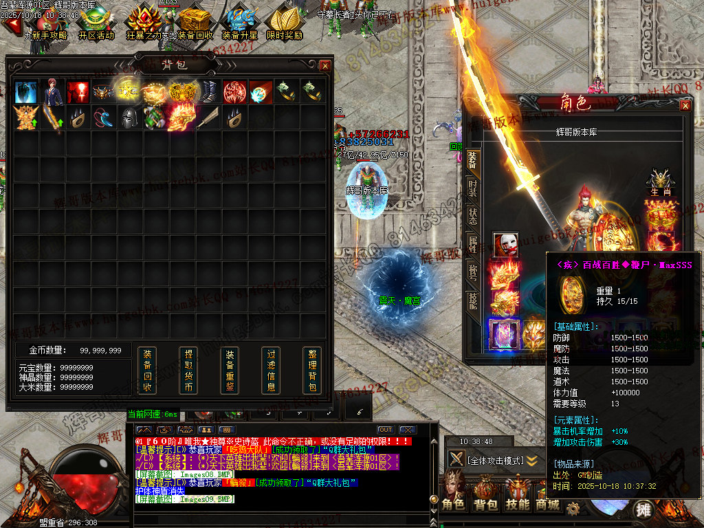 本服任何装备都均可爆到..渾源宝箱和钥匙各种大小BOSS怪物均爆.一切平等.