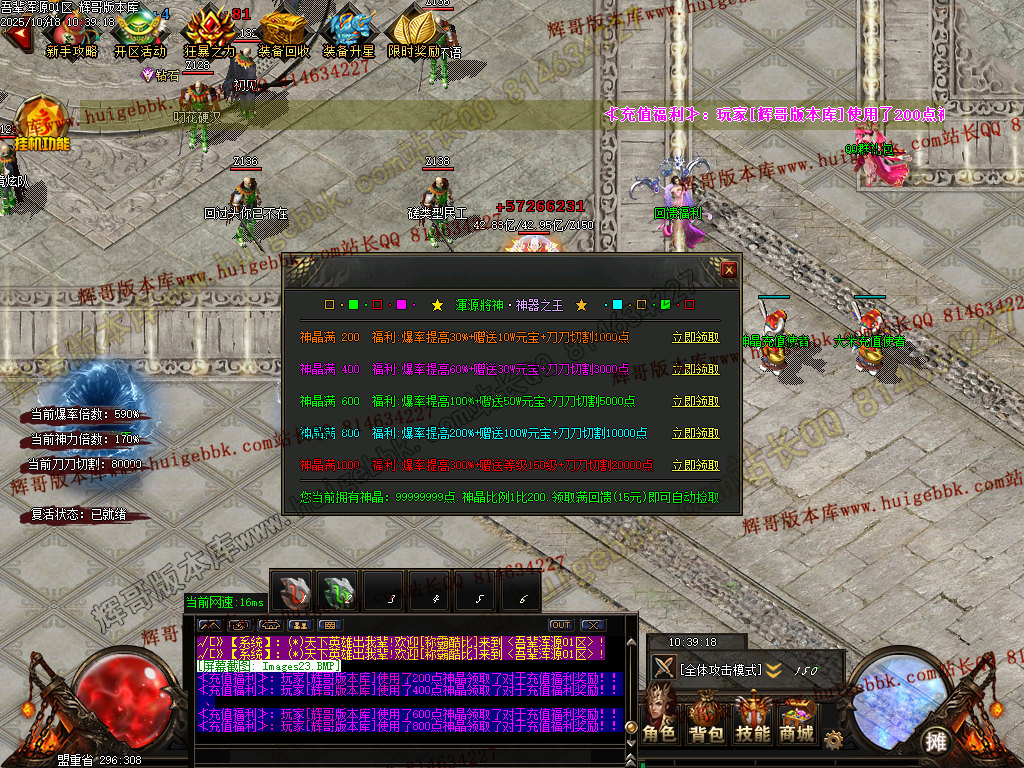 神晶福利怪爆10-100神晶..元宝福利怪暴10W-100W元宝..您懂了吗 ?