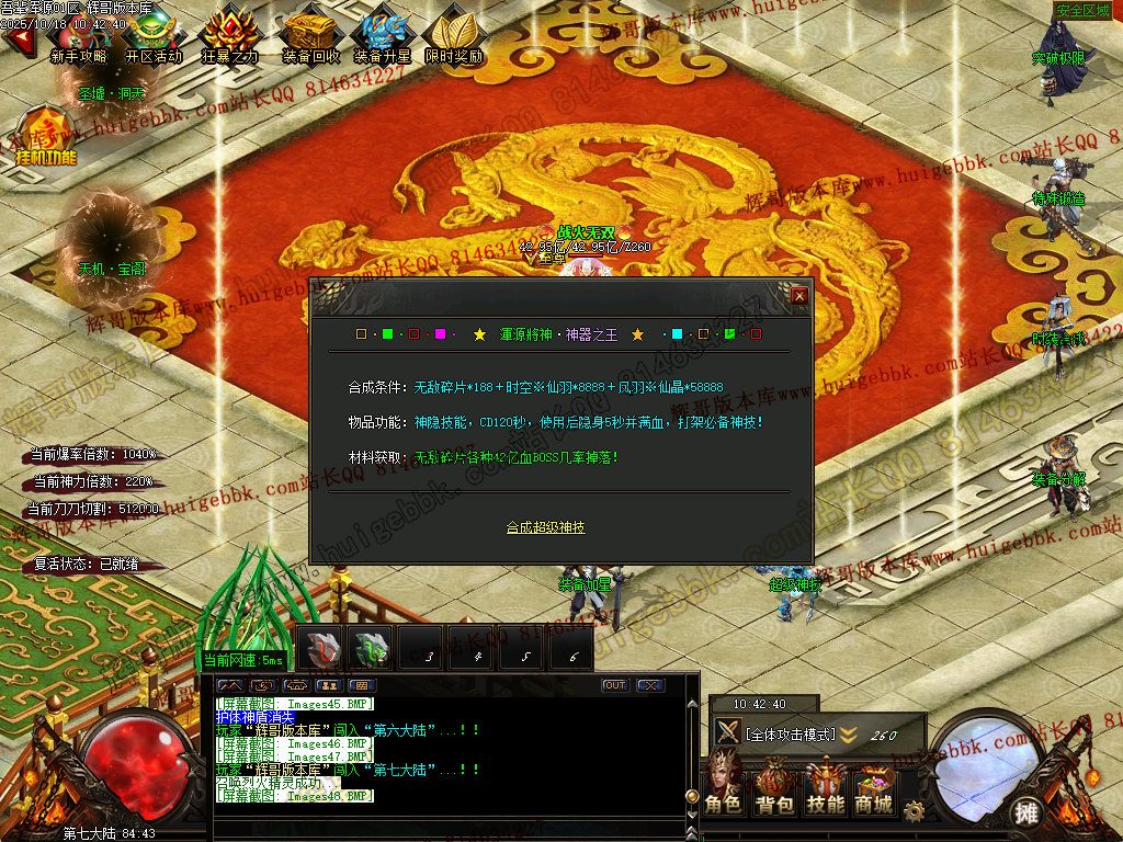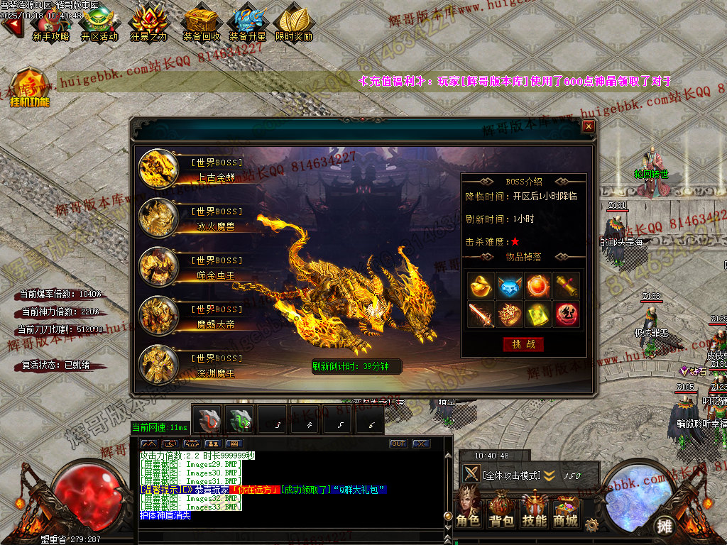福利BOSS几率掉落任何超级物品和大额元宝大额神晶..一切看脸..
