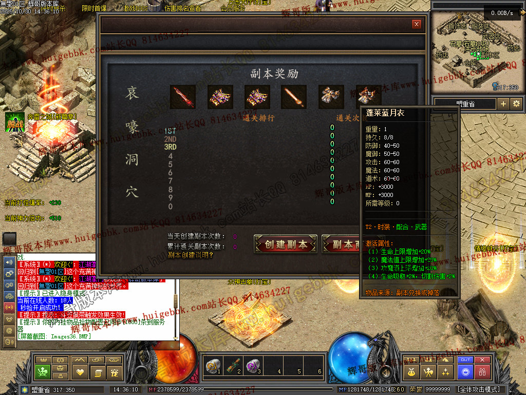 如果发现影响开区的大问题,可联系站长进行免费修复,细节问题自己处理不负责细节问题,