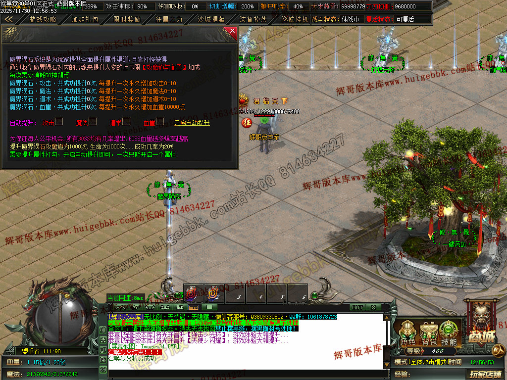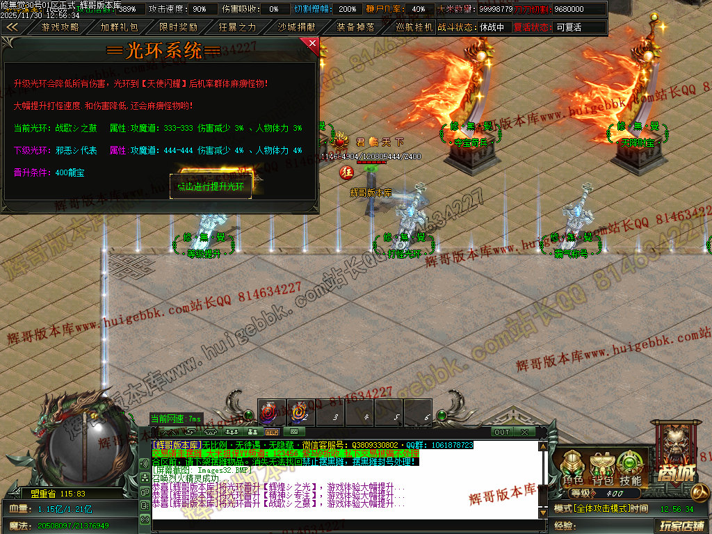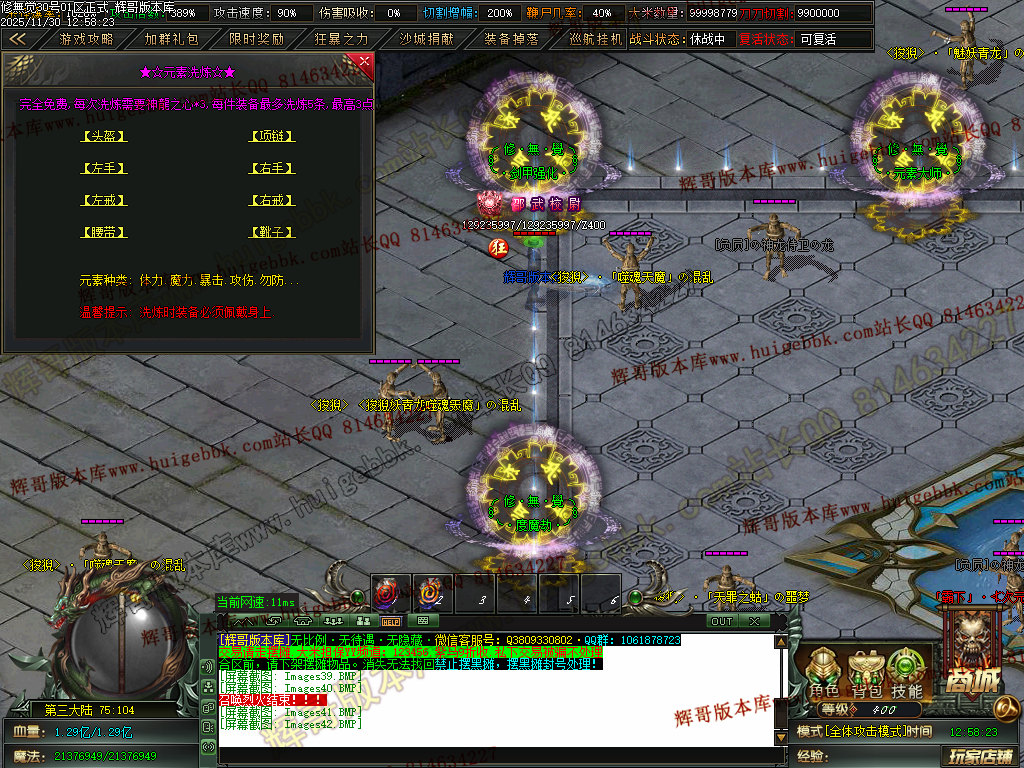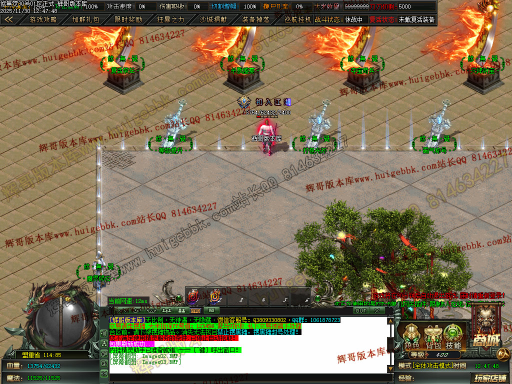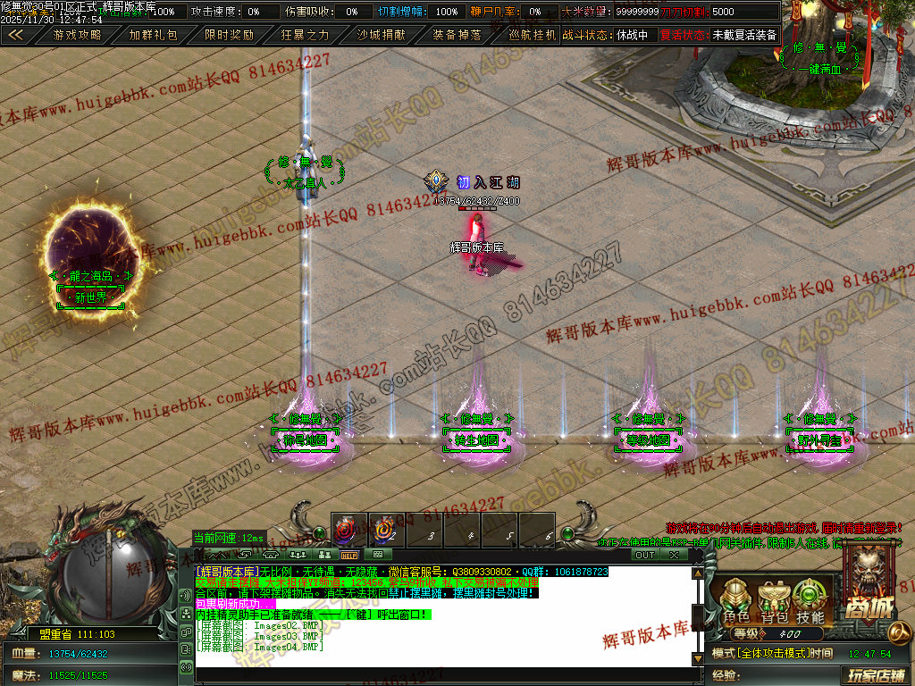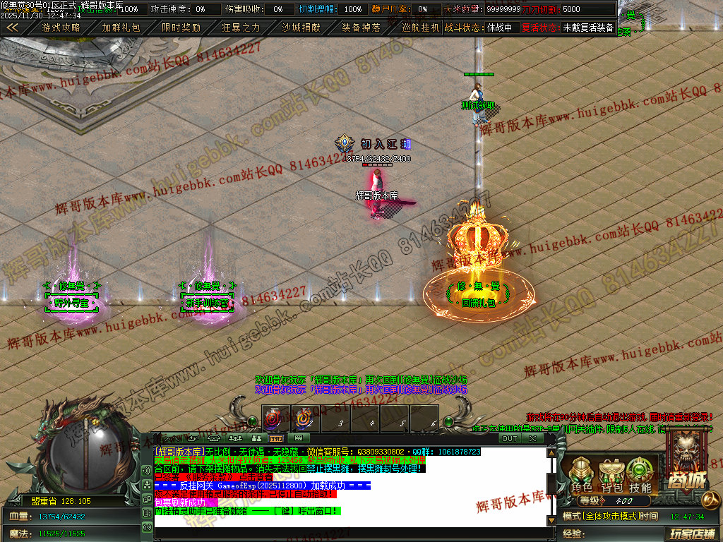 本服打怪方式以群怪为主.上线QQ礼包自带1%切割,所有怪都能打死,快慢问题!