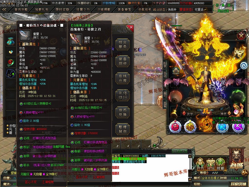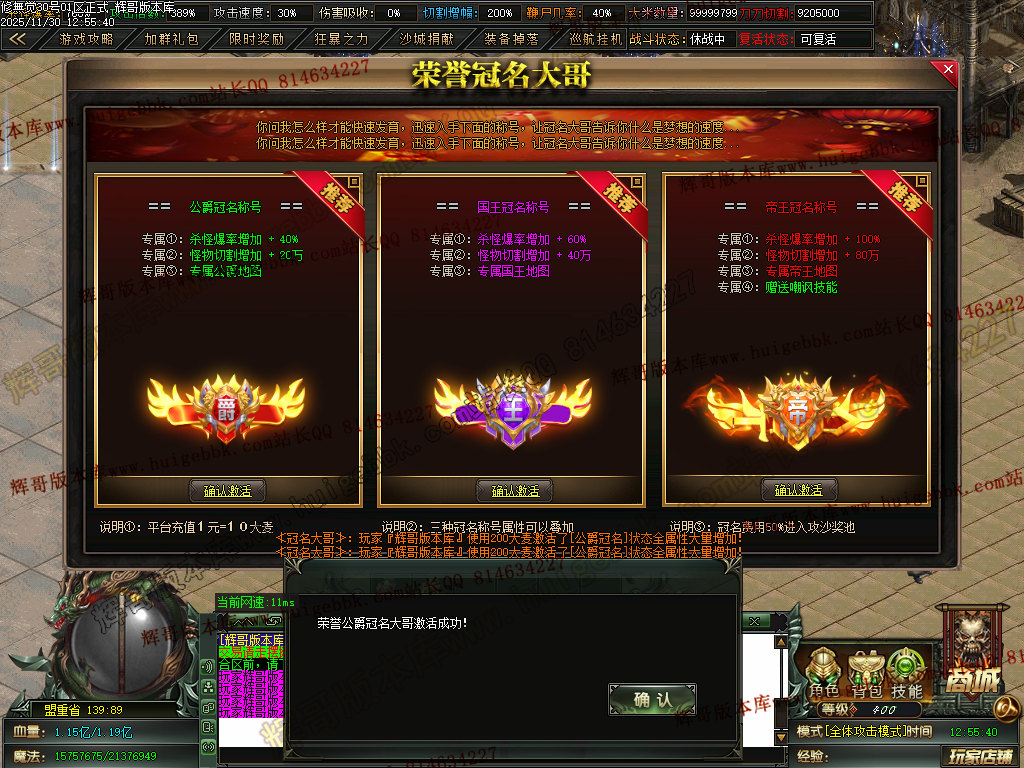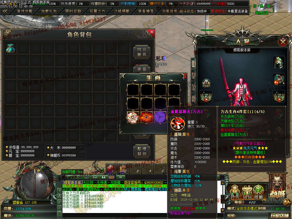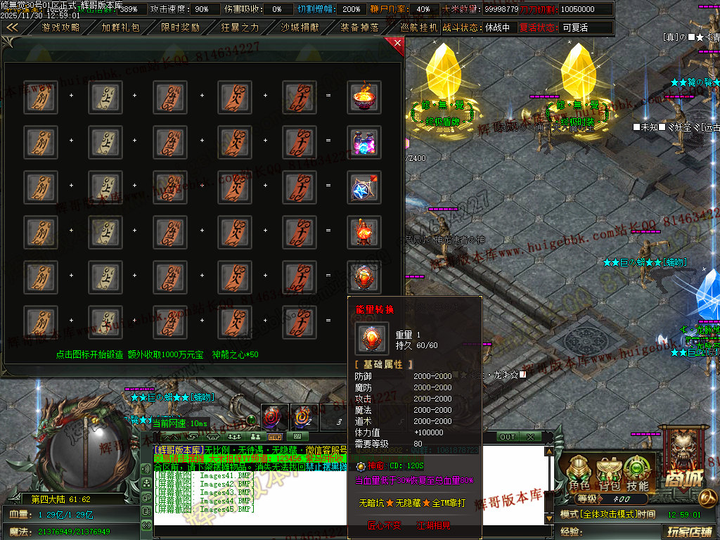 3.元宝充值转区号属性==爆率+切割+鞭尸+切割增幅