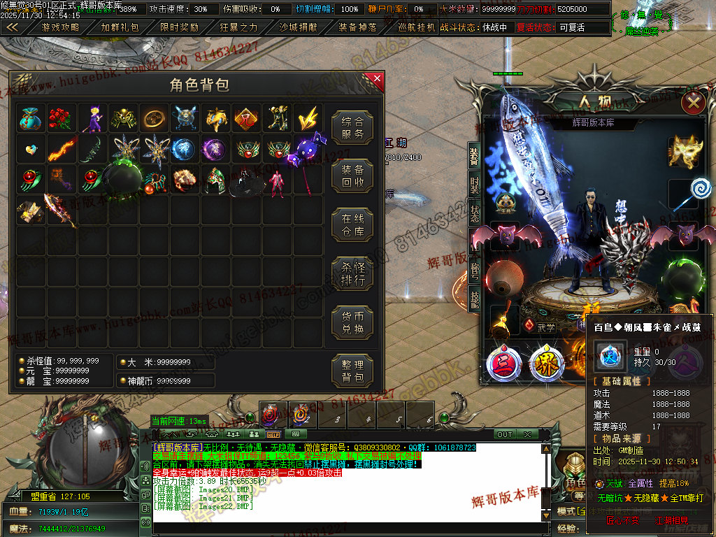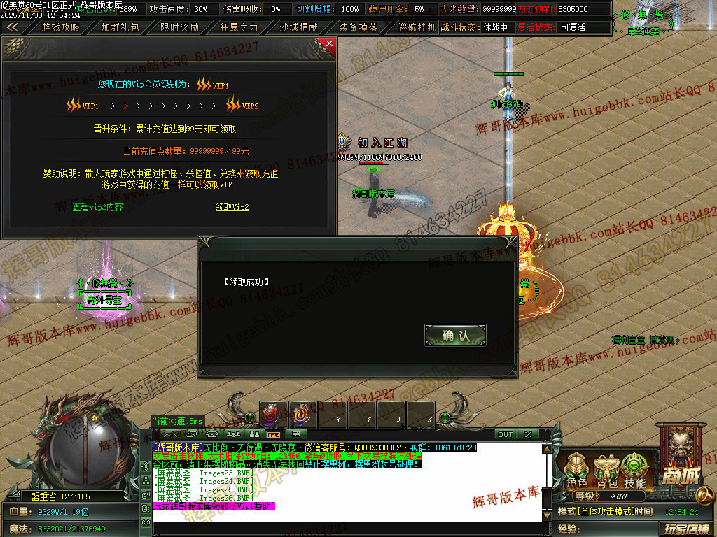 5.充值3档-342块==300元宝+42大米==属性爆率150+切割150万+%15鞭尸+1.5倍切割增幅