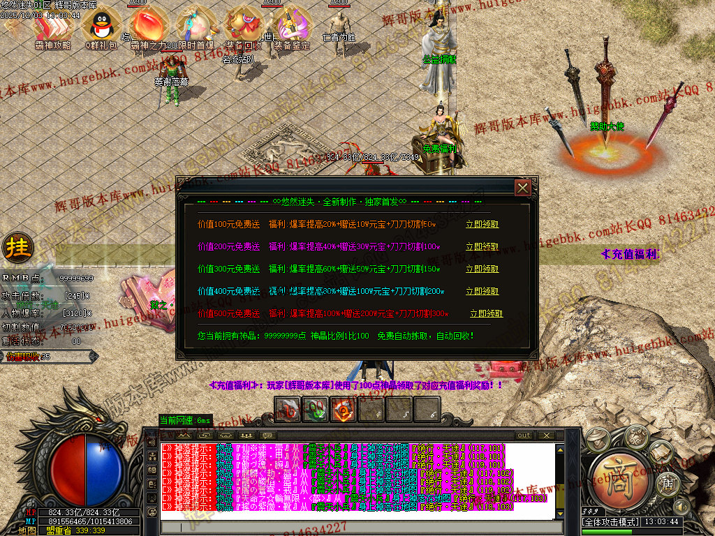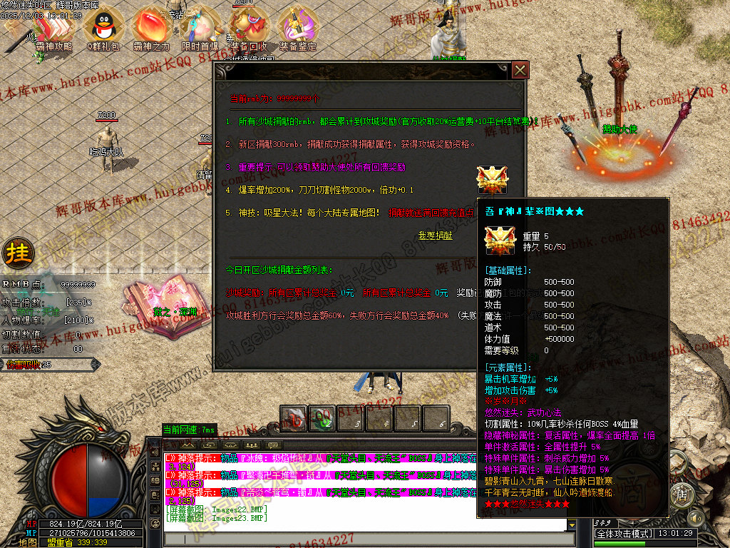30RMB沙捐领取全屏吸怪和攻沙资格,送1280充值点领取土城赞助。