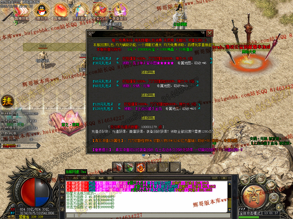 128元真实充值点充值多倍攻和伤害吸收,属性吊炸天