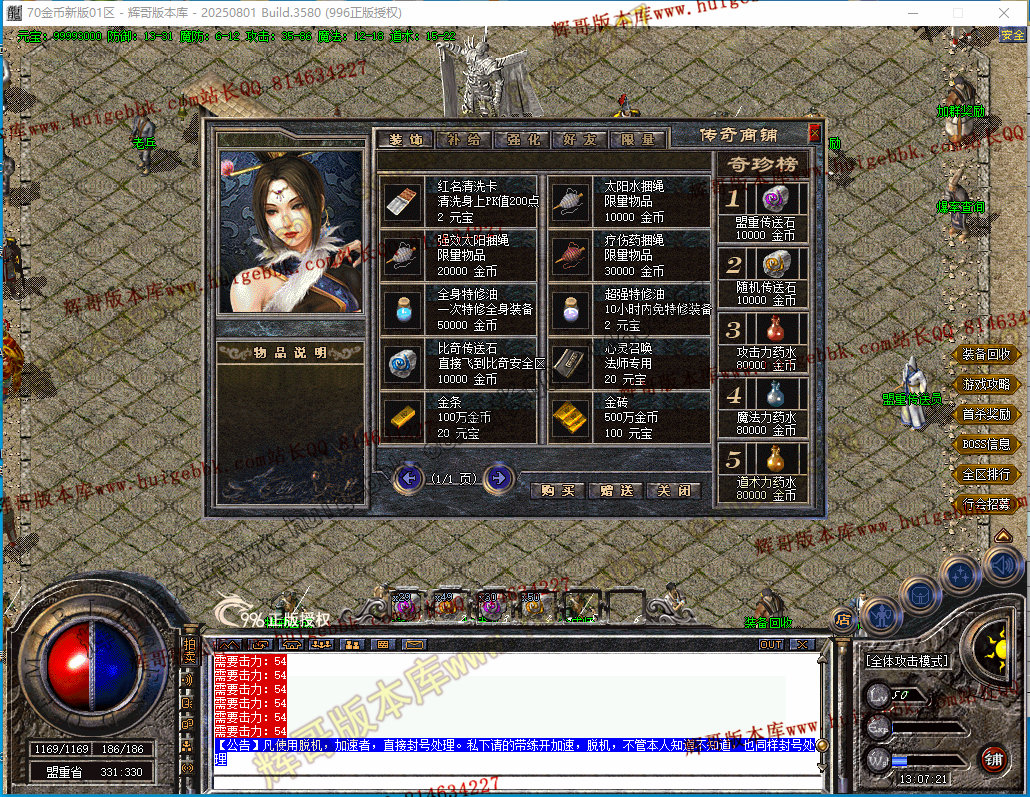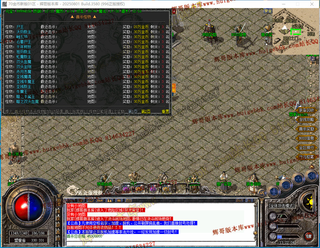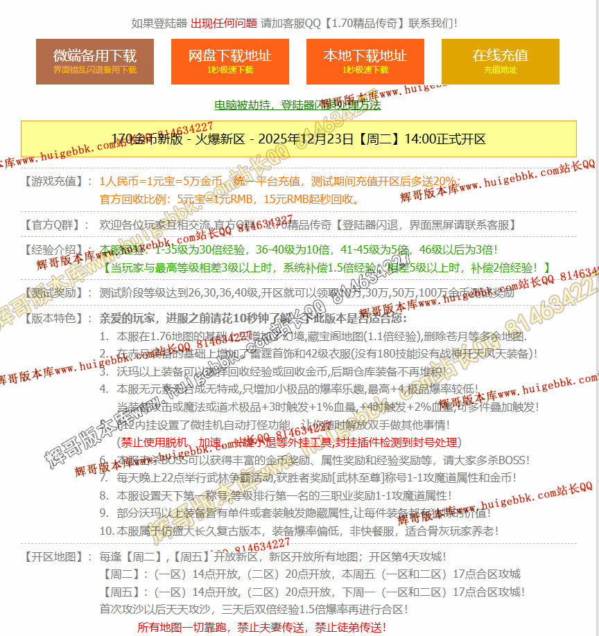 如果发现影响开区的大问题,可联系站长进行免费修复,细节问题自己处理不负责细节问题,