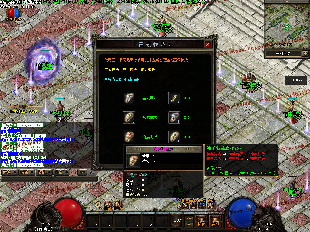 27-654独家酆都城隍三职业传奇-四大陆-套装玩法-自动回收-全屏吸怪-群体切割-背包神器-翎风引擎