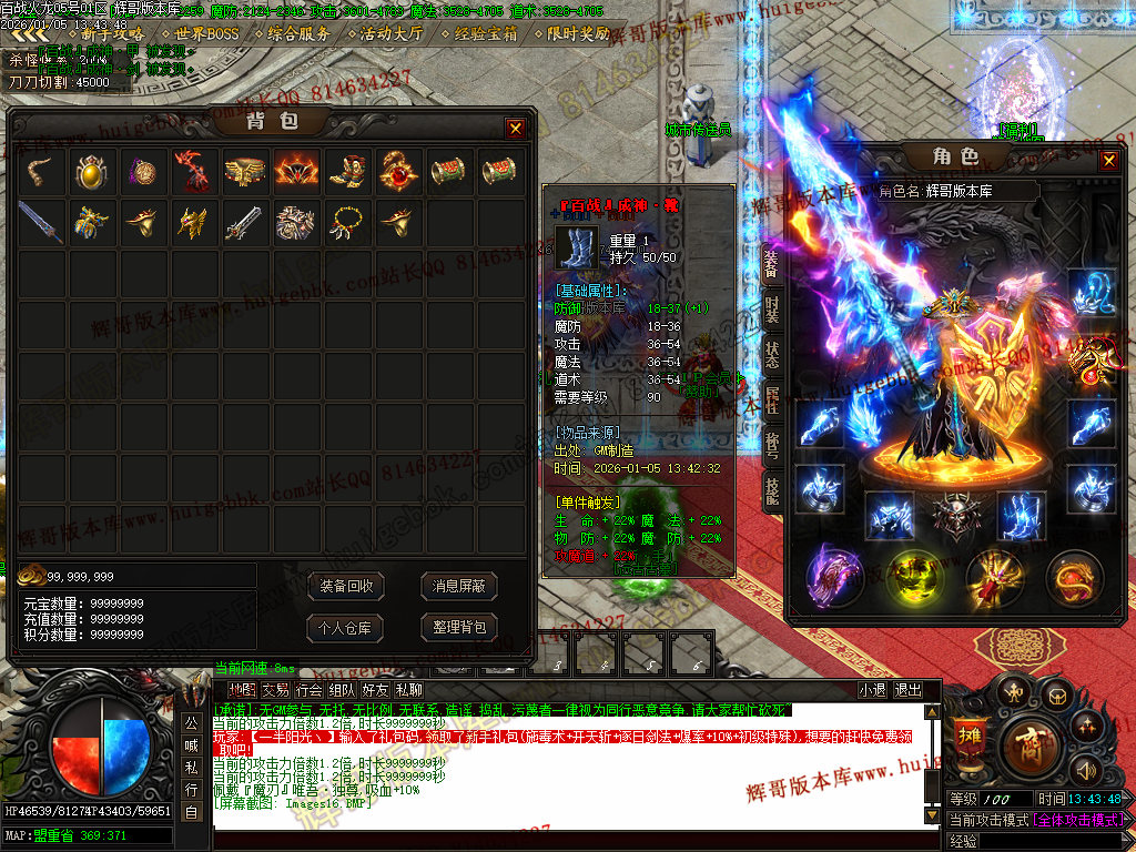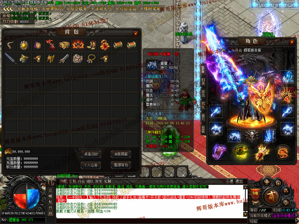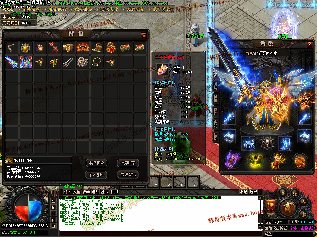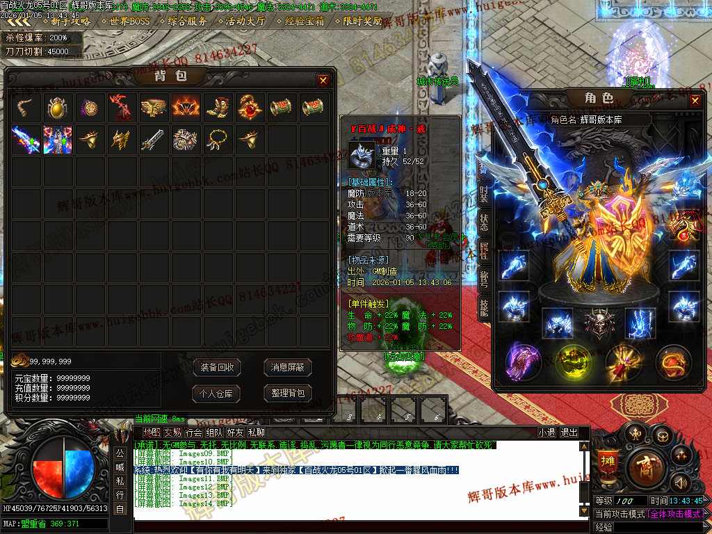 {充值500块元宝,免费领取满称号,全屏吸怪,转生10重.爆率额外+300