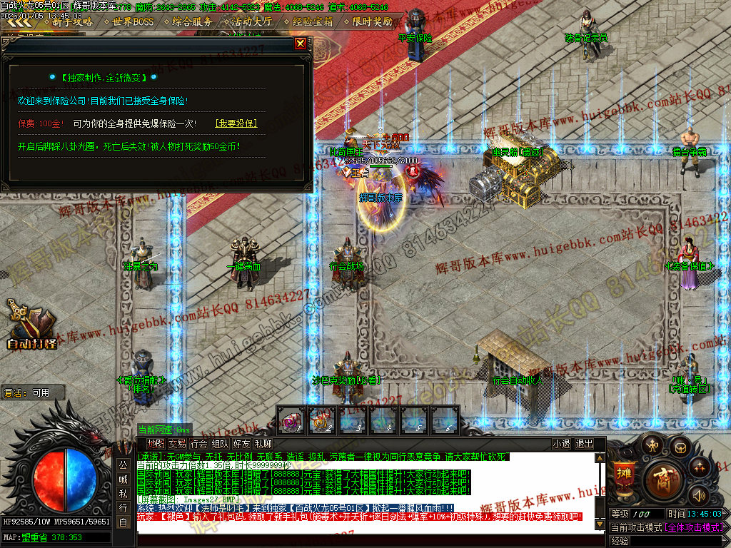 {本服无沙捐,攻沙奖励红包,赞助可打,所有装备不限制爆率,打到好装备还可以卖给老板