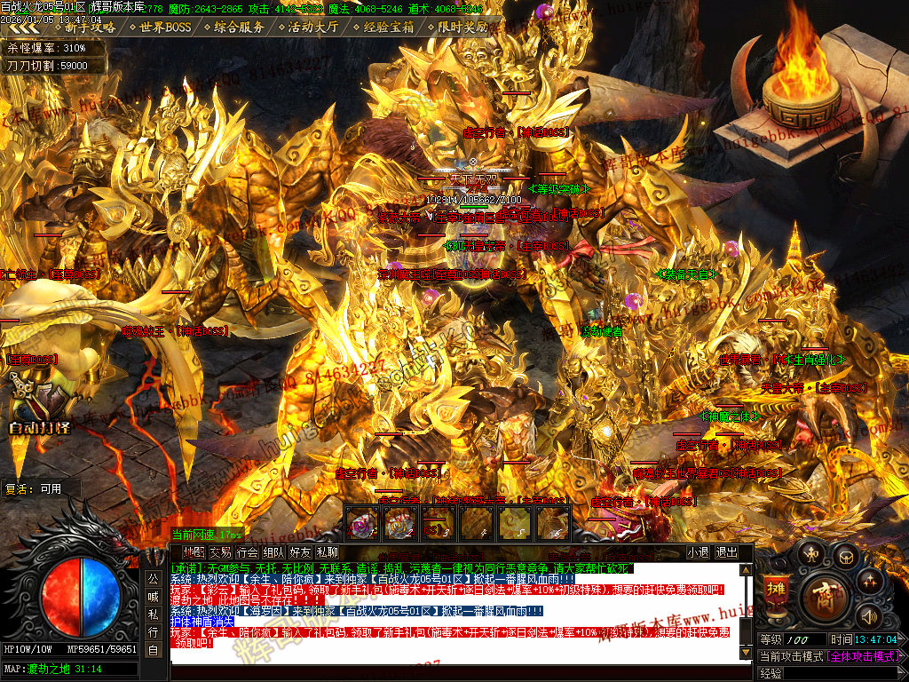 {游戏承诺:<打任何BOSS都有几率进入隐藏地图,刷新厂长表哥,爆本服所有装备,人人都有机会!