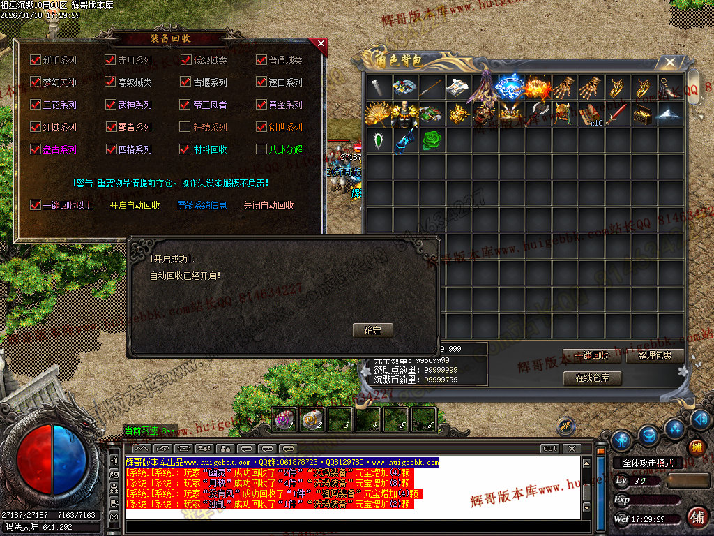 如果发现影响开区的大问题,可联系站长进行免费修复,细节问题自己处理不负责细节问题,