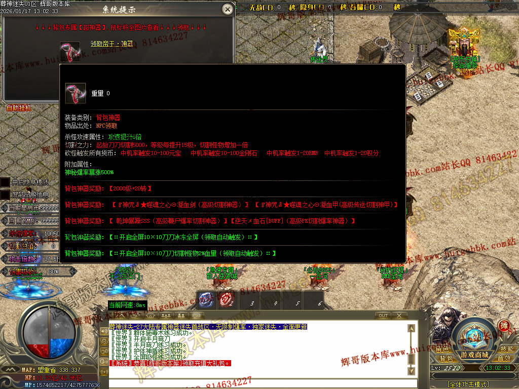 如果发现影响开区的大问题,可联系站长进行免费修复,细节问题自己处理不负责细节问题,