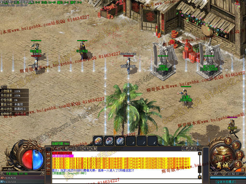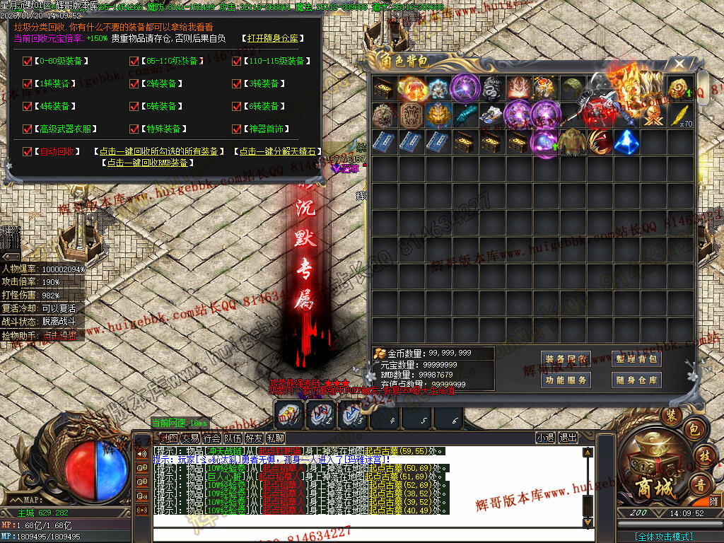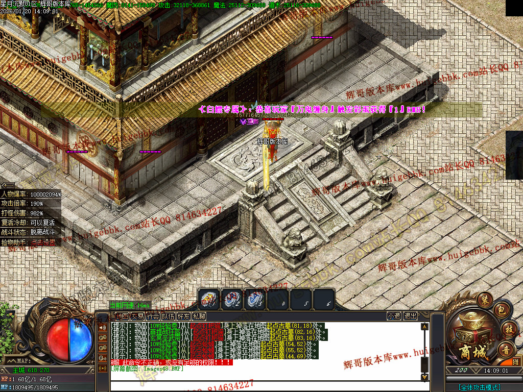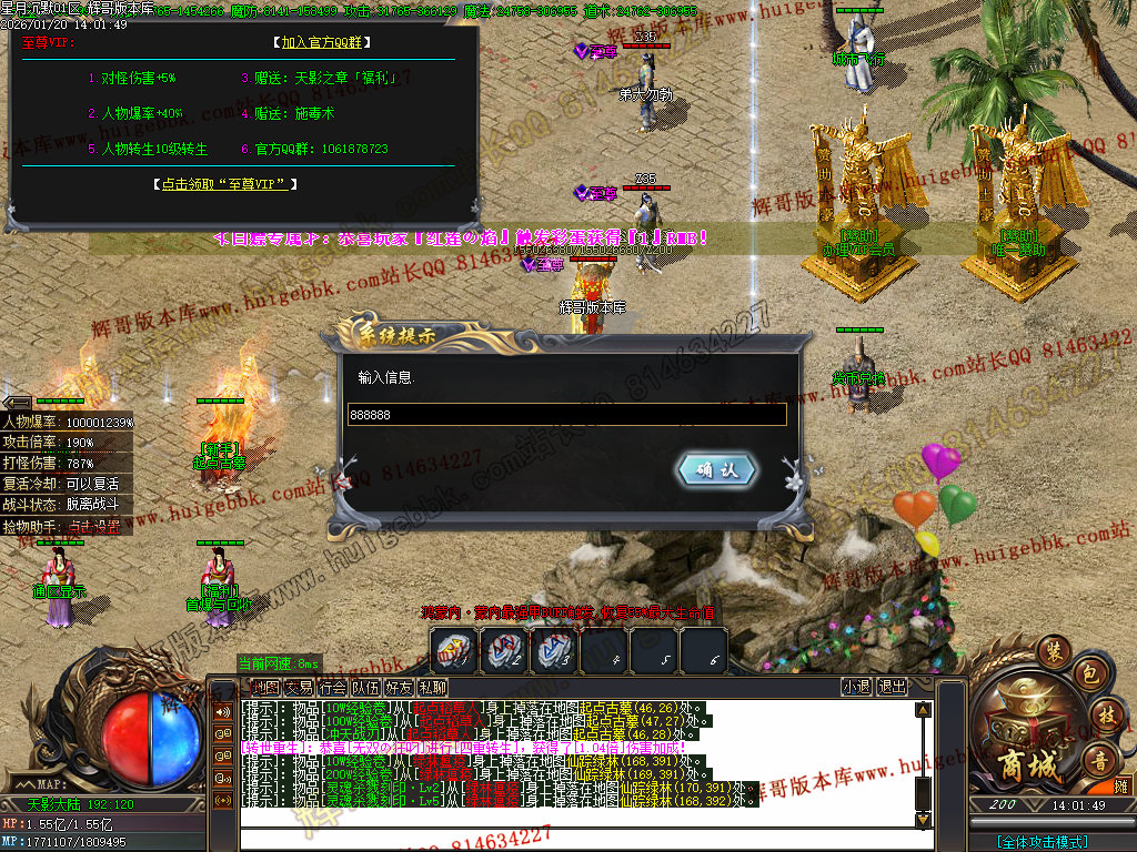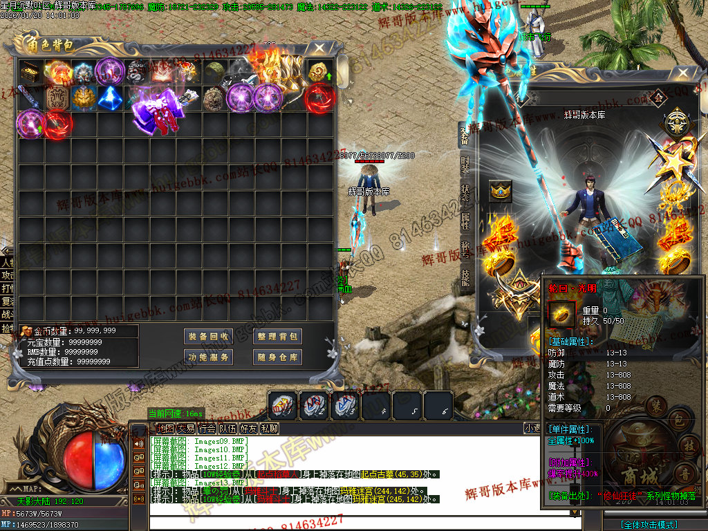 2.超级大礼包88充值点,赠送:时装·雪人披风,斗转星移lv.4 一代宗师称号 金币1500万 转生15转 群体施毒术 十步一杀 魔法盾