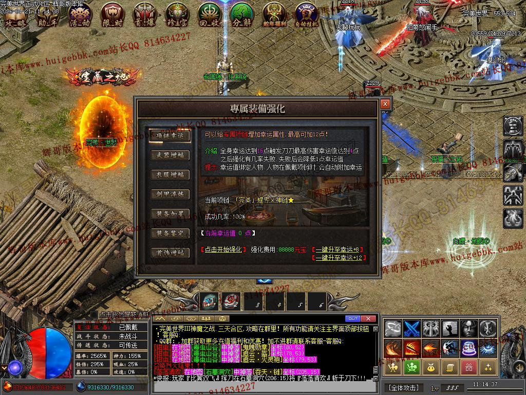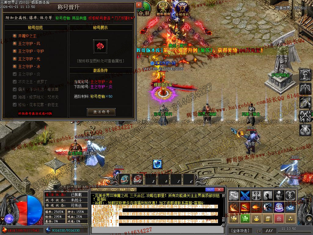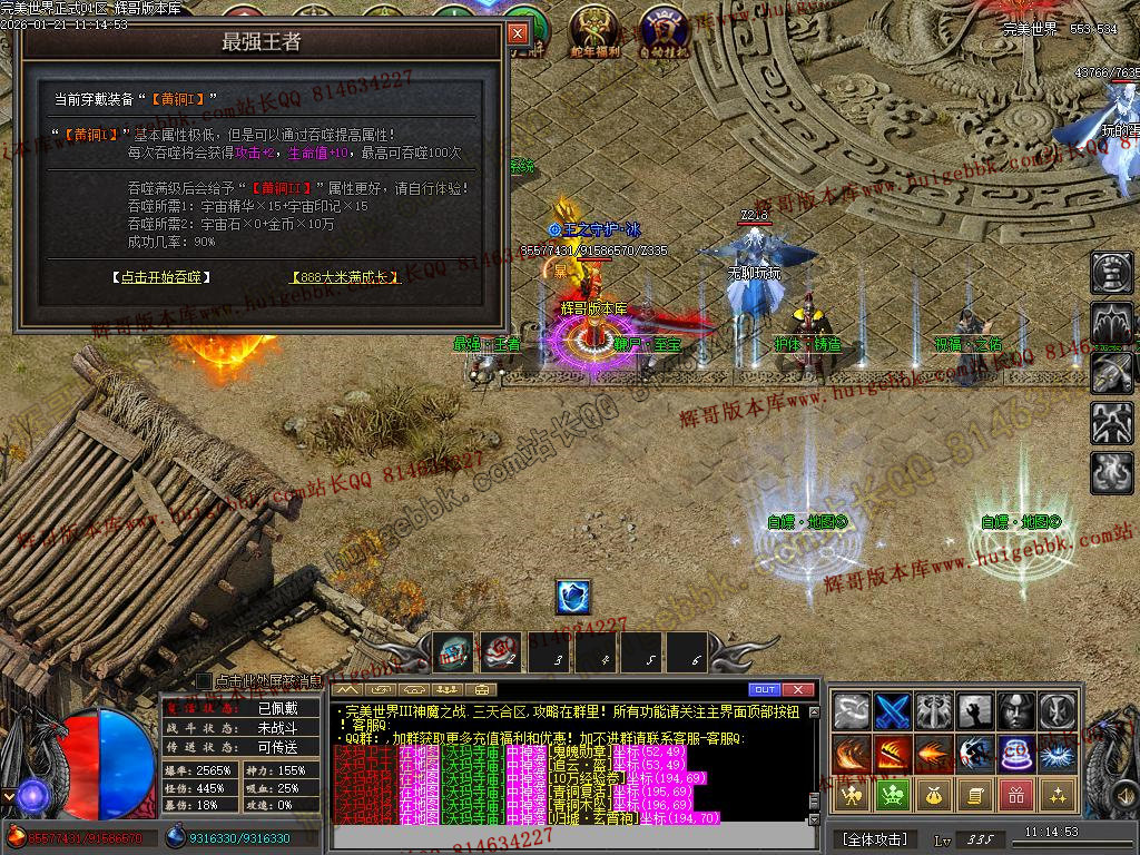 然后多余的材料就开始升级最强王者!  记住·洗练·强化·增幅·才是打怪PK最直接有效的方法!