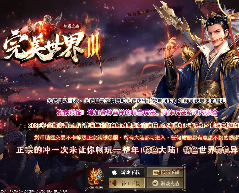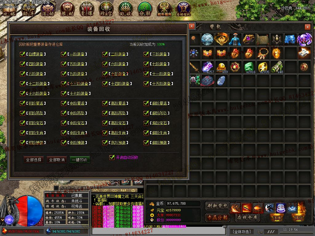 27-765独家完美世界III神魔之战专属神器单职业版本-带假人-自动回收-16大陆-新GOM引擎