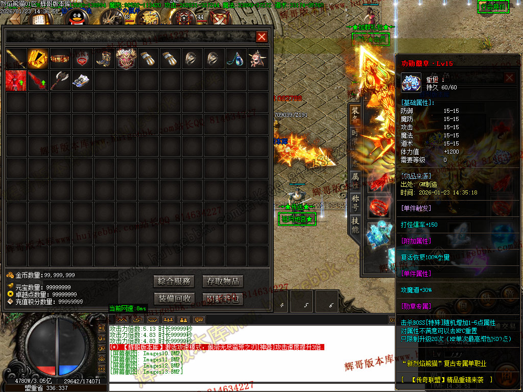 【礼包】本服唯一充值礼包仅需<38><充值点<赠送N多材料、爆率、切割、高级称号等,无限麻痹宝宝。