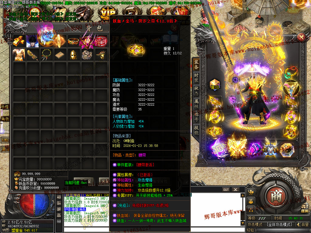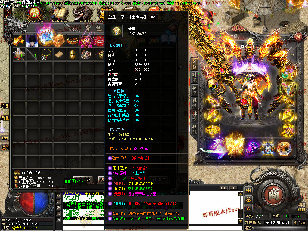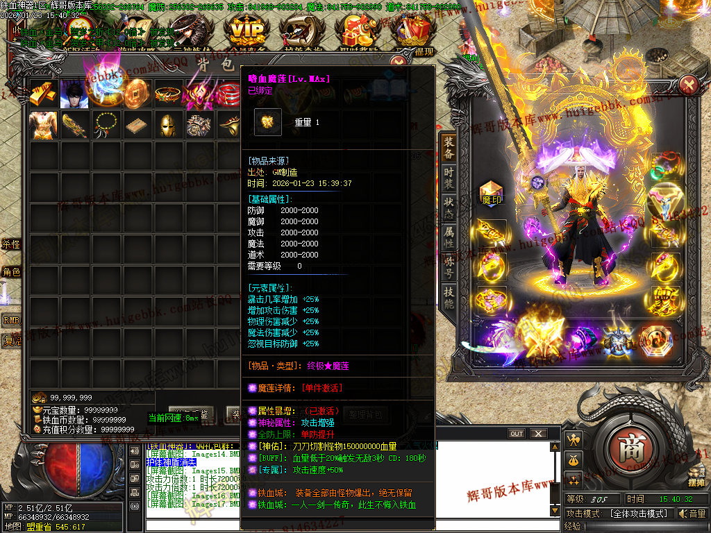 305级+30转+满称号+满元神+嗜血魔莲MAX可免费回收新区588充值-三次合区后无法回收