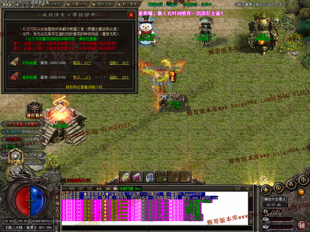 如果发现影响开区的大问题,可联系站长进行免费修复,细节问题自己处理不负责细节问题,