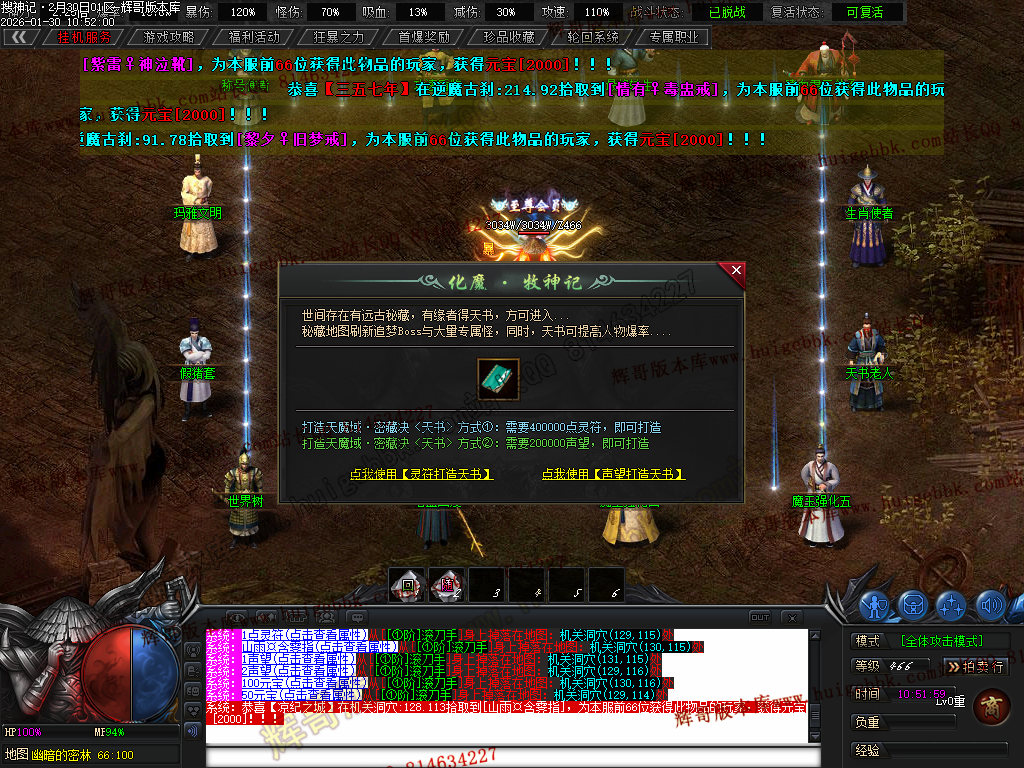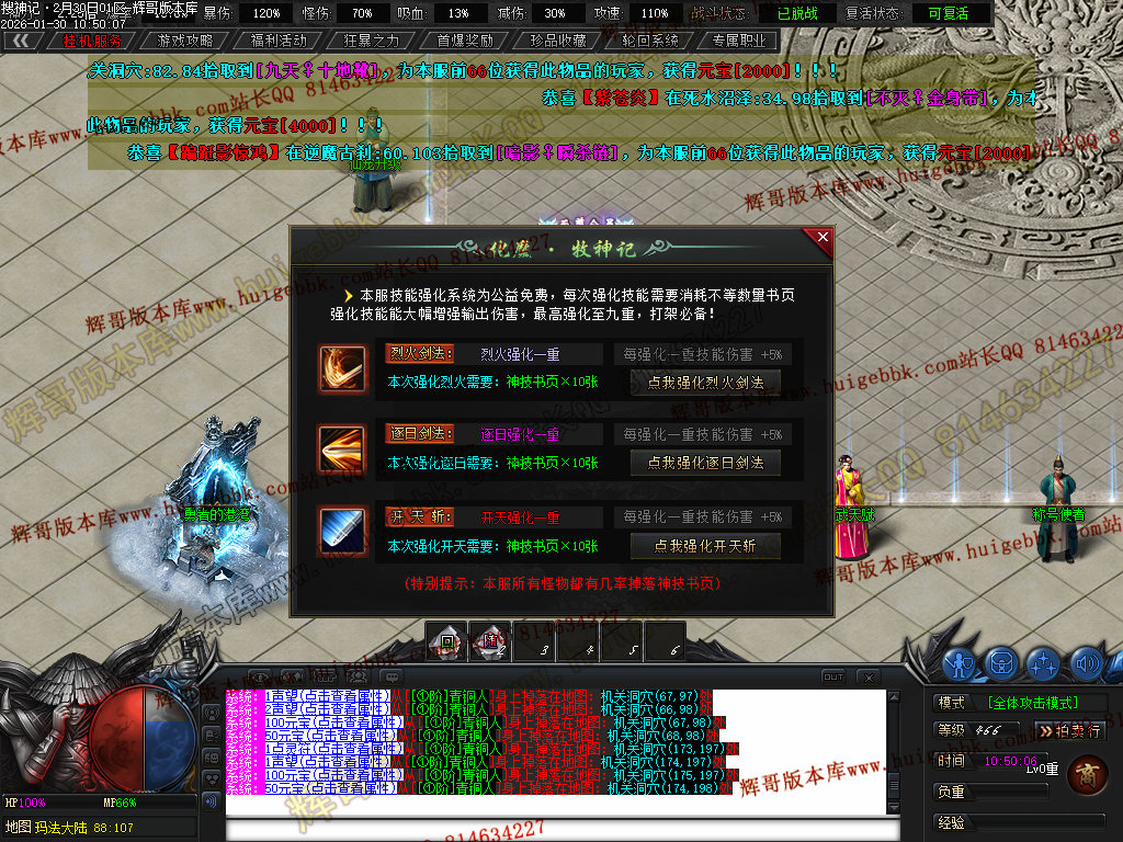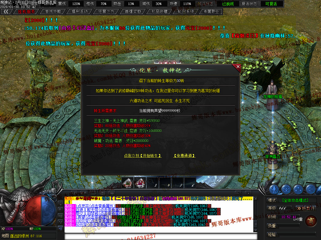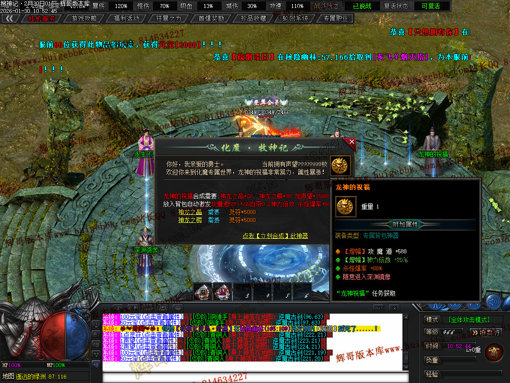 榜一大哥20元点券 (杀怪爆率+250% 攻击速度+30% 回收加成+50% 攻魔道+108 HP/MP+1200 领悟 魔法盾)