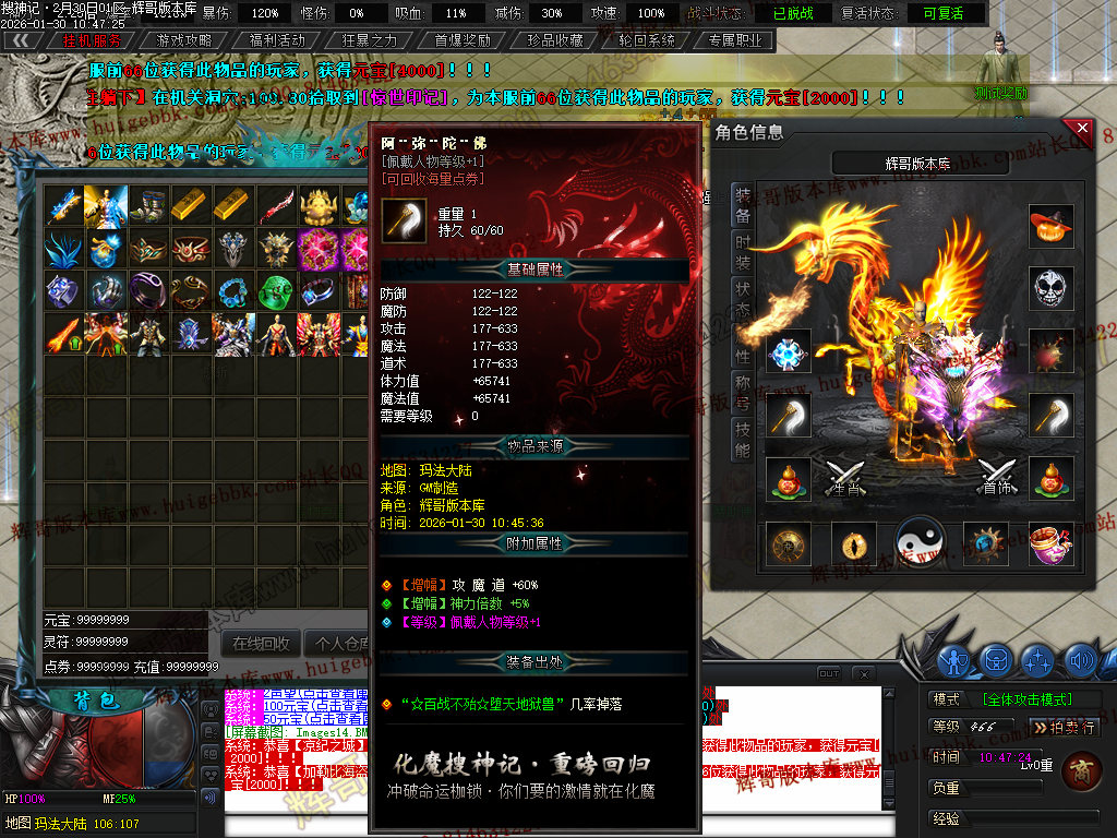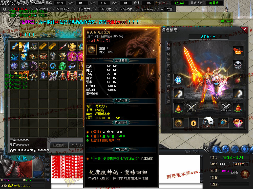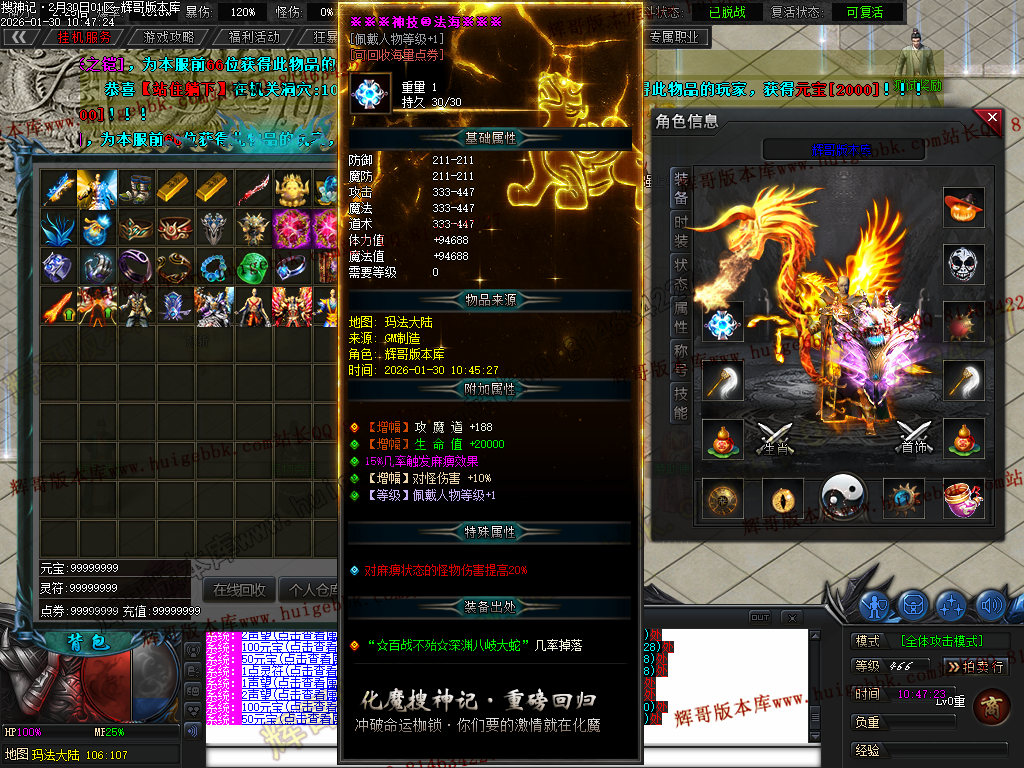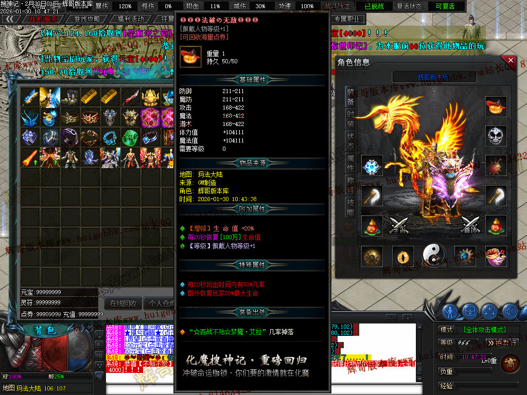榜一大哥20元点券 (杀怪爆率+250% 攻击速度+30% 回收加成+50% 攻魔道+108 HP/MP+1200 领悟 魔法盾)