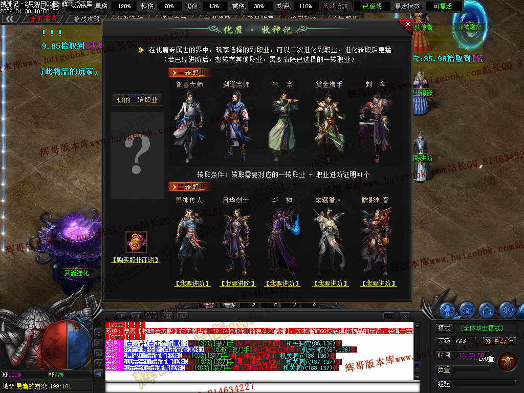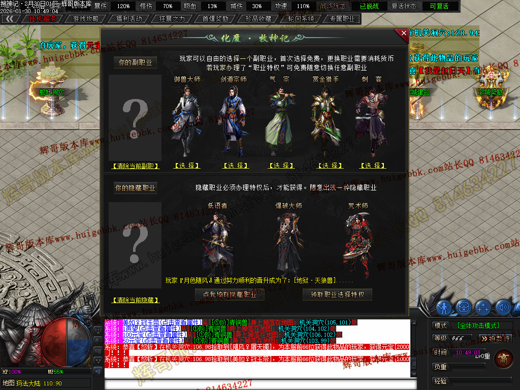 专属职业 五种 ··· 御兽大师 剑道宗师 气宗 赏金猎手 刺客