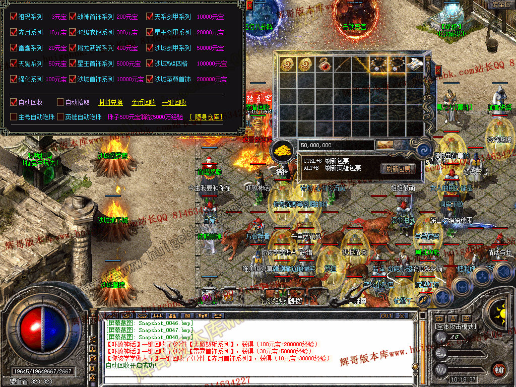 领取赞助礼包.获得在线回收[永久].内涵自动吃珠子功能.方便快捷