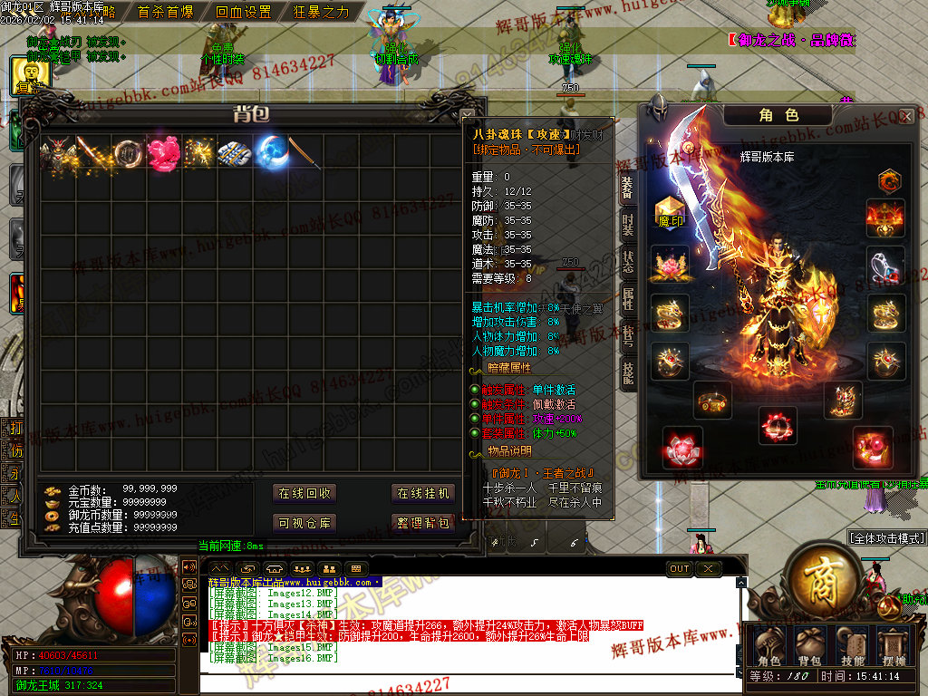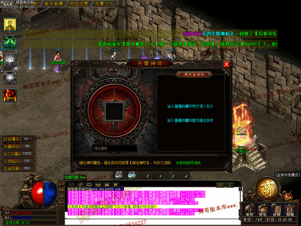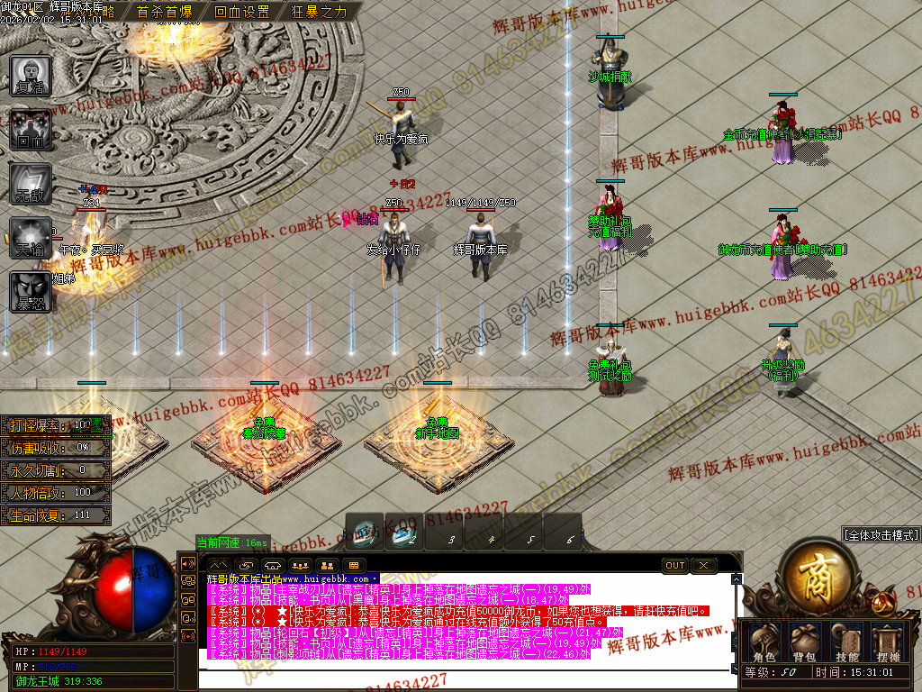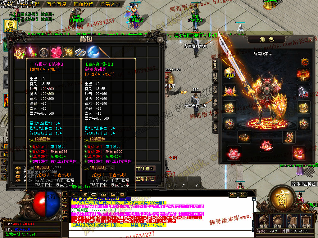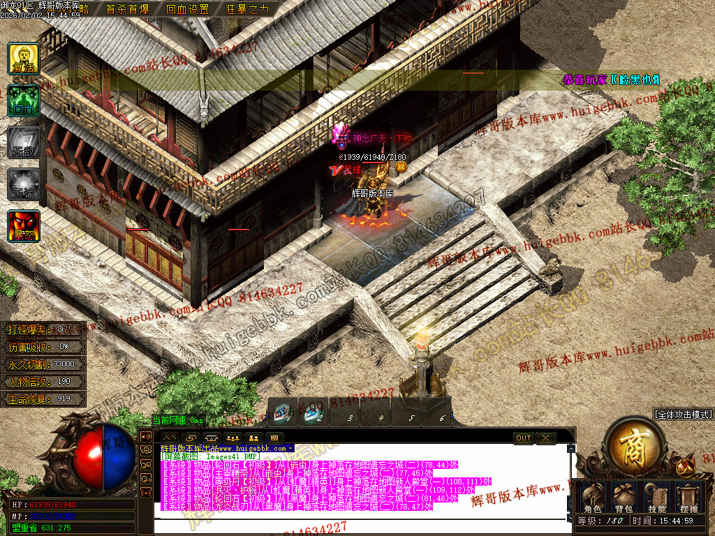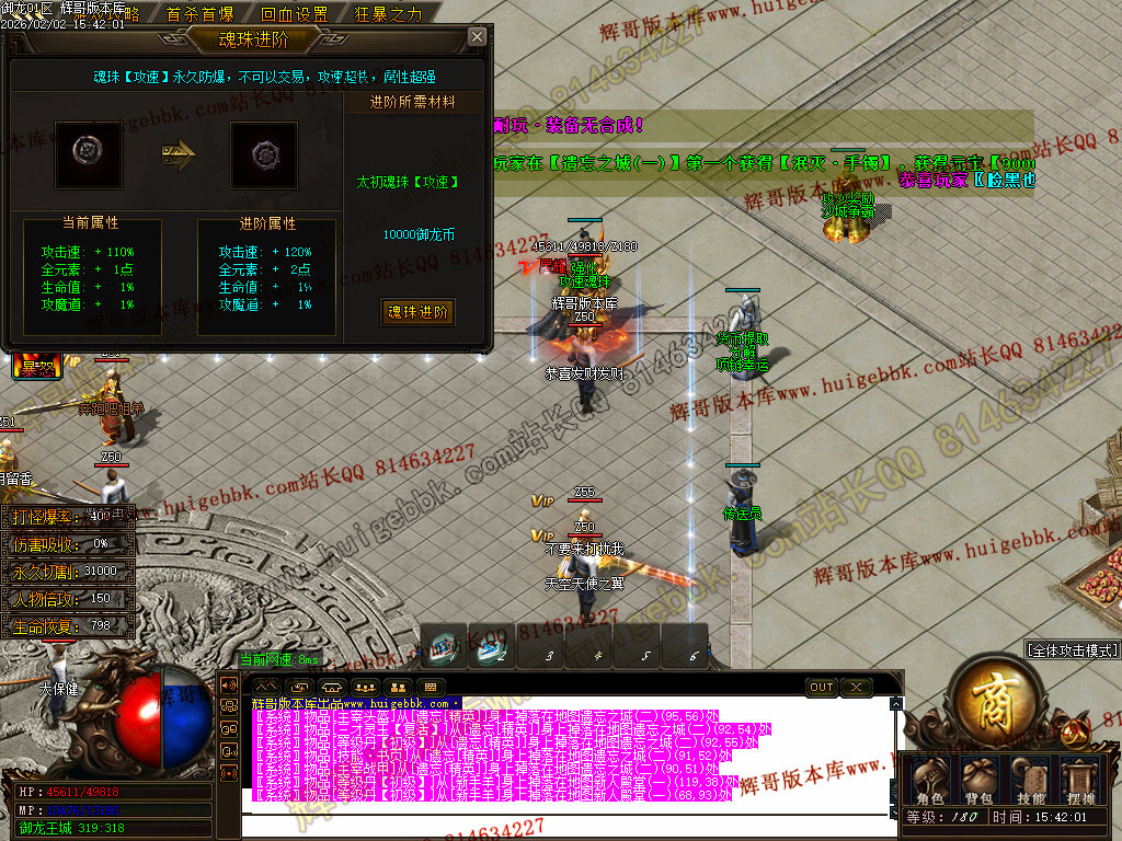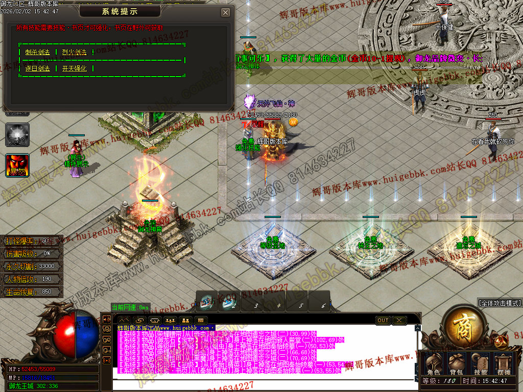 修复了终极装备 有一个属性 是群攻技能的 十字斩杀技能 原来是对人物触发.正常是对人物不触发.只对怪触发.