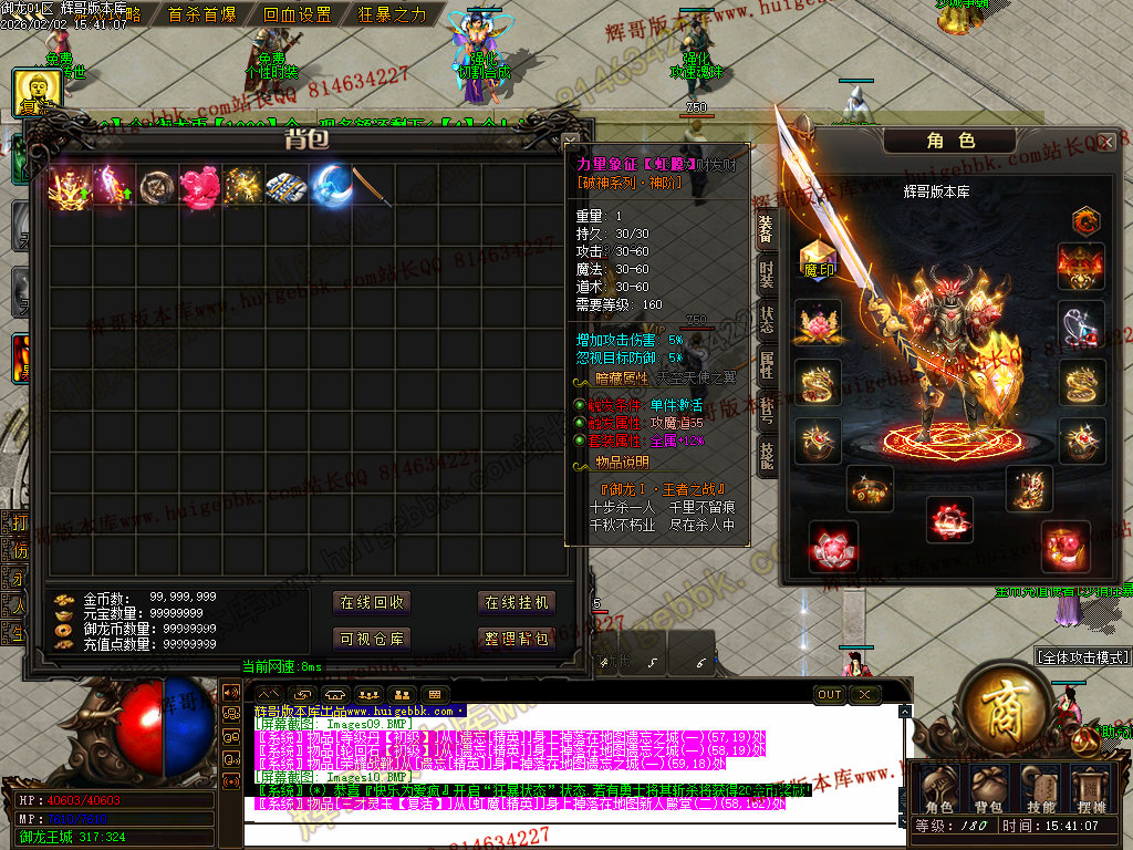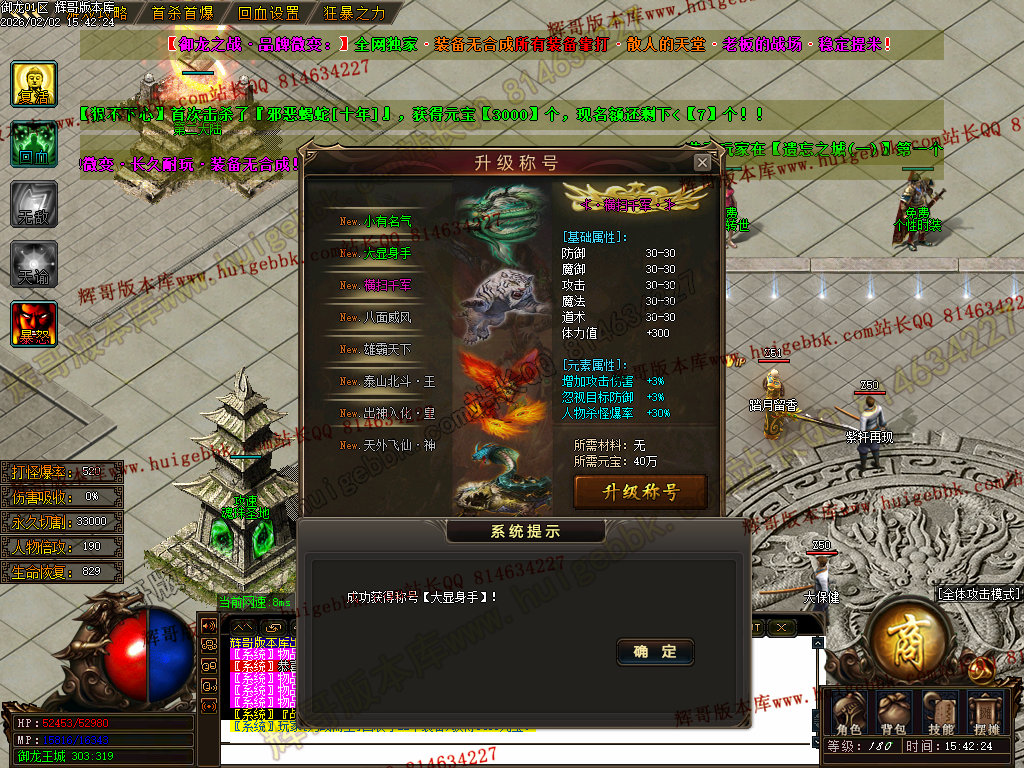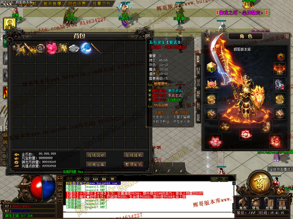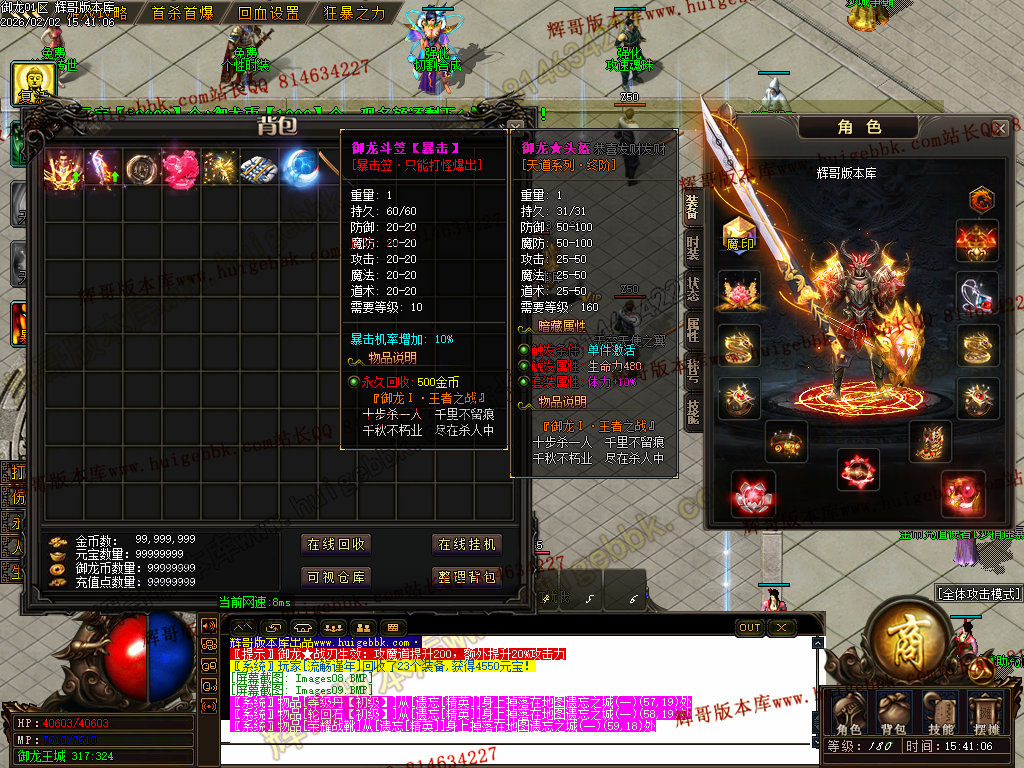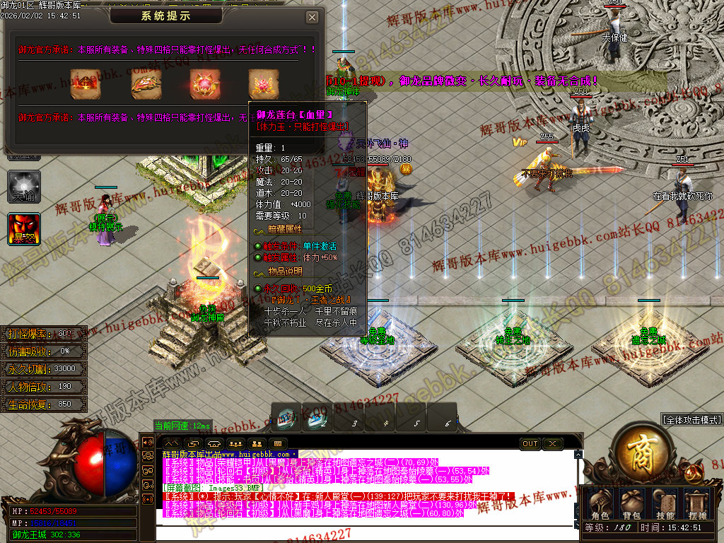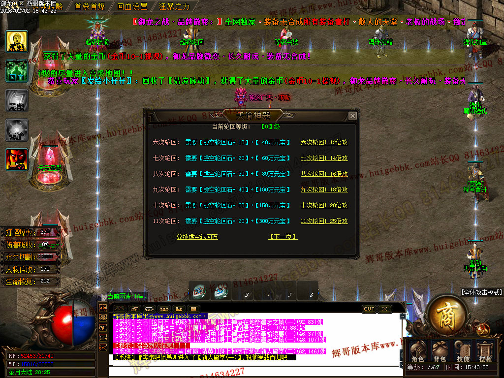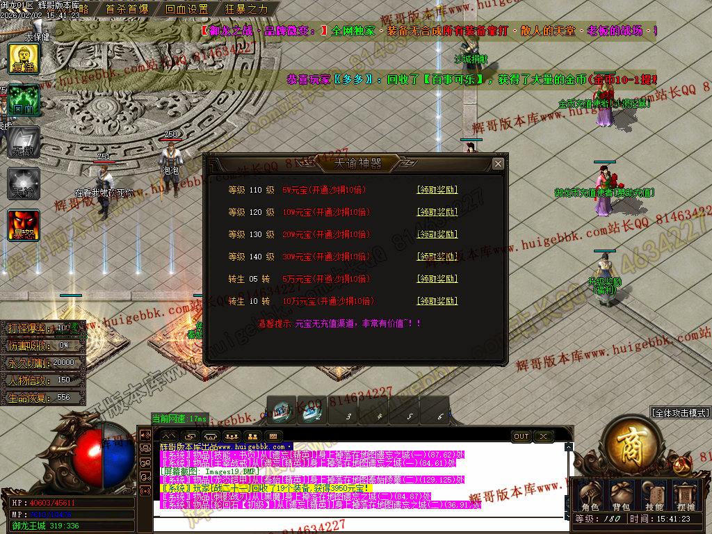 修复了终极装备 有一个属性 是群攻技能的 十字斩杀技能 原来是对人物触发.正常是对人物不触发.只对怪触发.