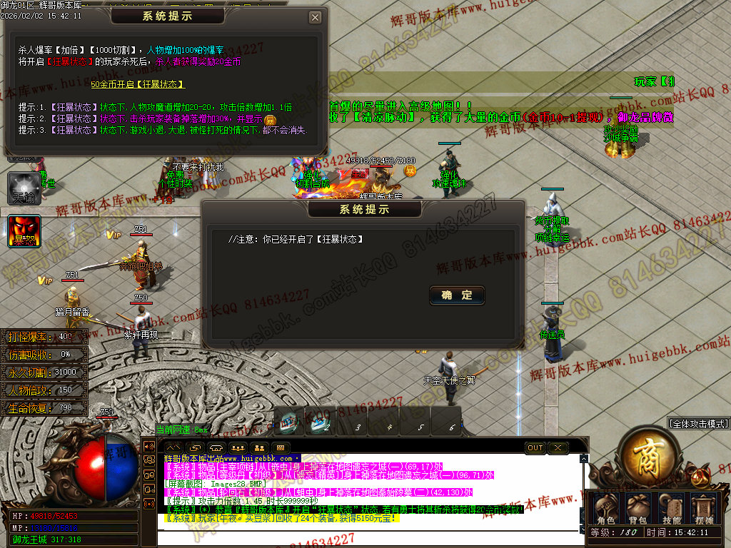 【自动狂暴】(高几率保护回城,很难被杀死,数量QM脚本最上面控制)