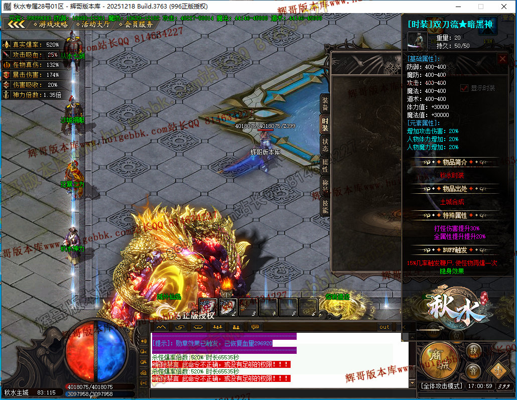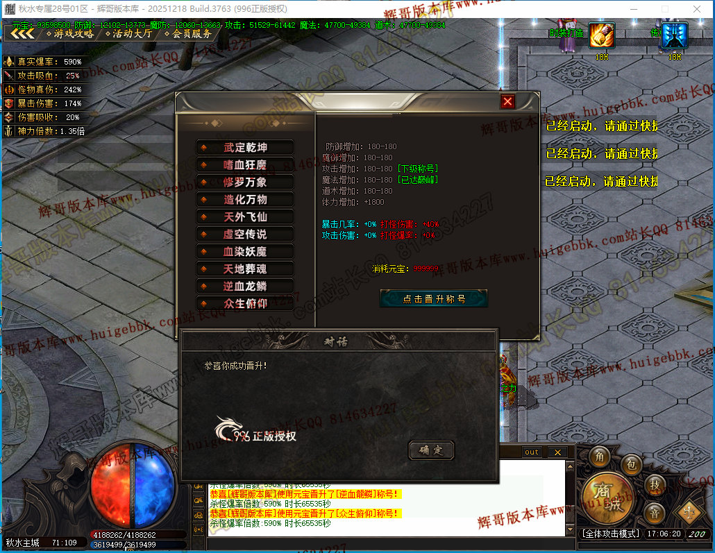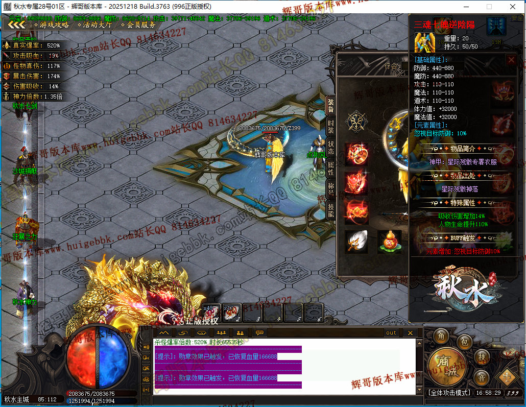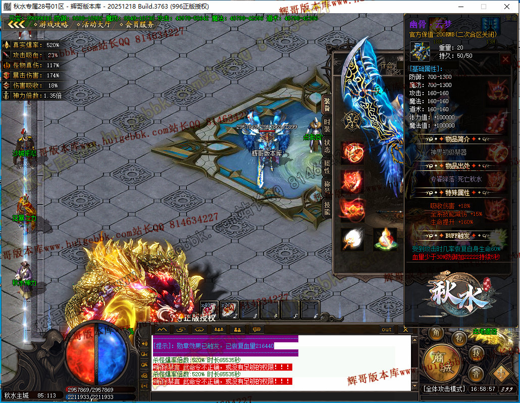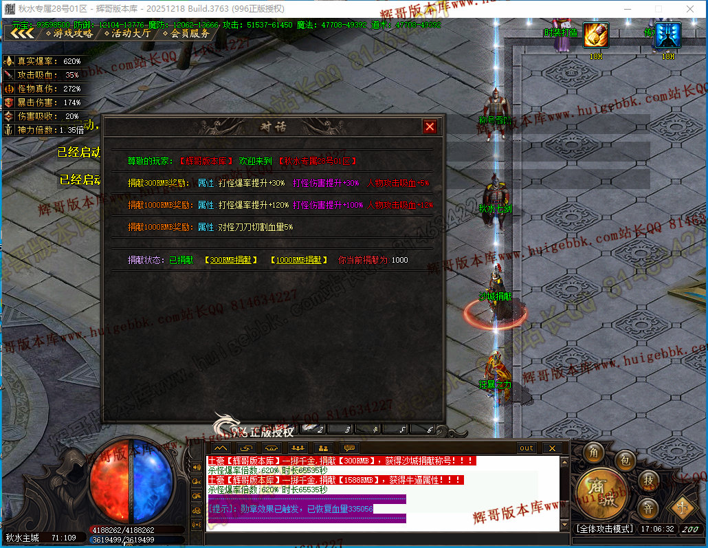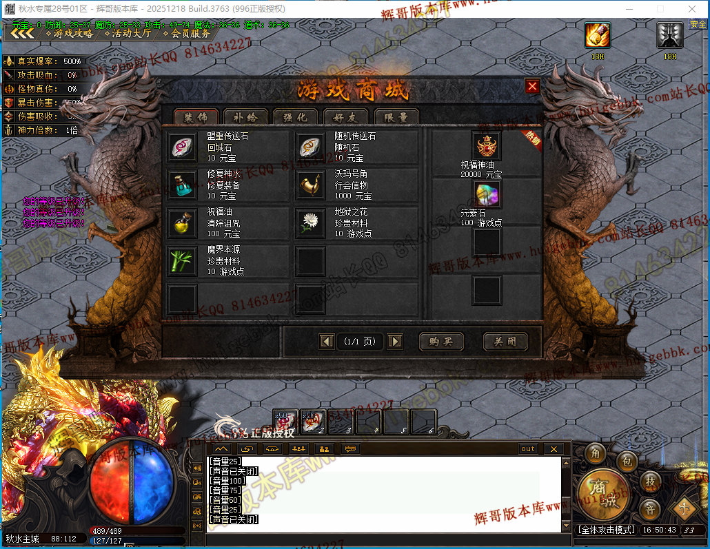 如果发现影响开区的大问题,可联系站长进行免费修复,细节问题自己处理不负责细节问题,