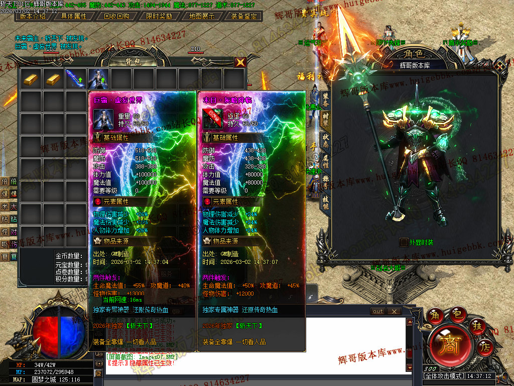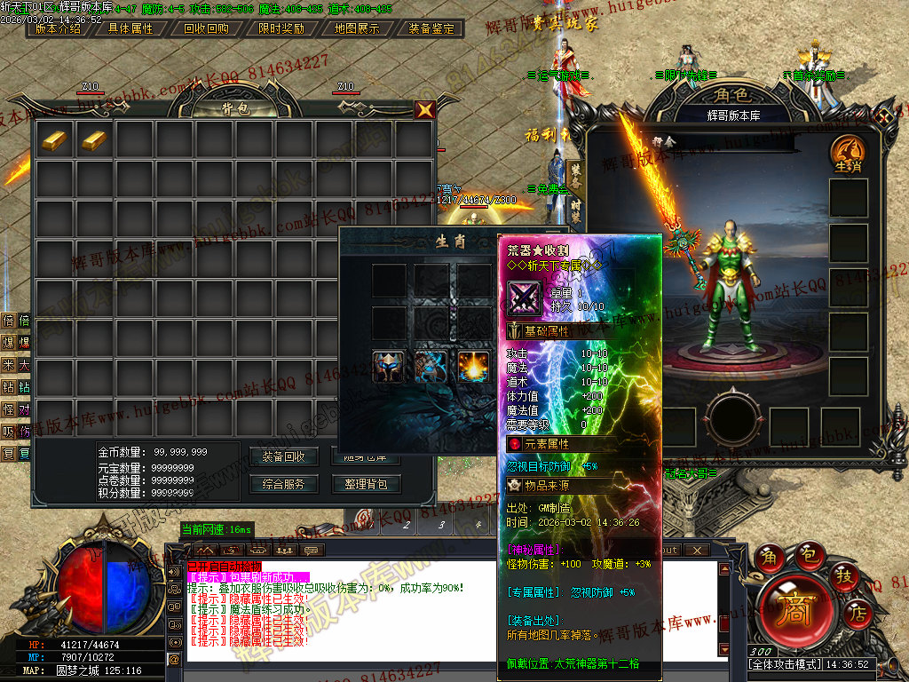 注意:所有装备专属神器 全服所有怪都爆 包括白色垃圾小怪