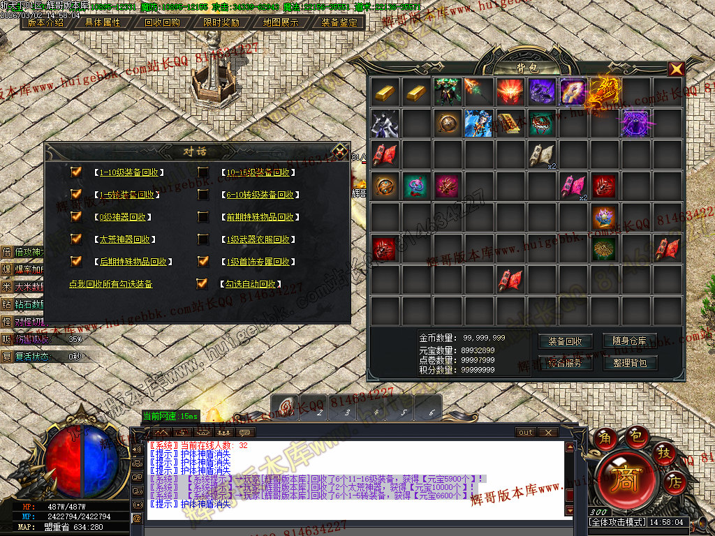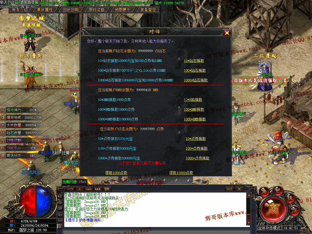 本服所有货币可以自由兑换,只要您有时间!绝对可以称霸一方!!