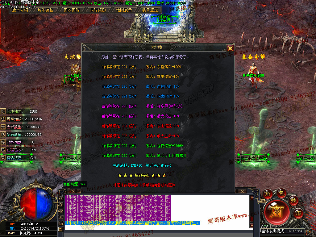 是本服唯一靠运气的特色玩法,升级全看脸,脸黑请轻喷!!!!