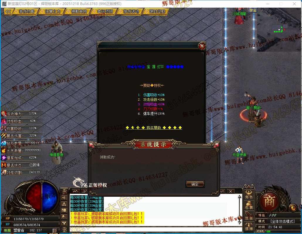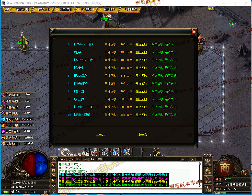 如果发现影响开区的大问题,可联系站长进行免费修复,细节问题自己处理不负责细节问题,