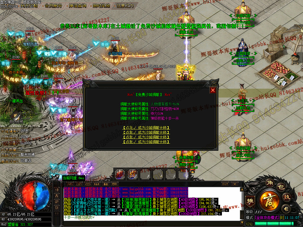 介绍4:开启公益沙城捐献获得挂机等强大属性功能