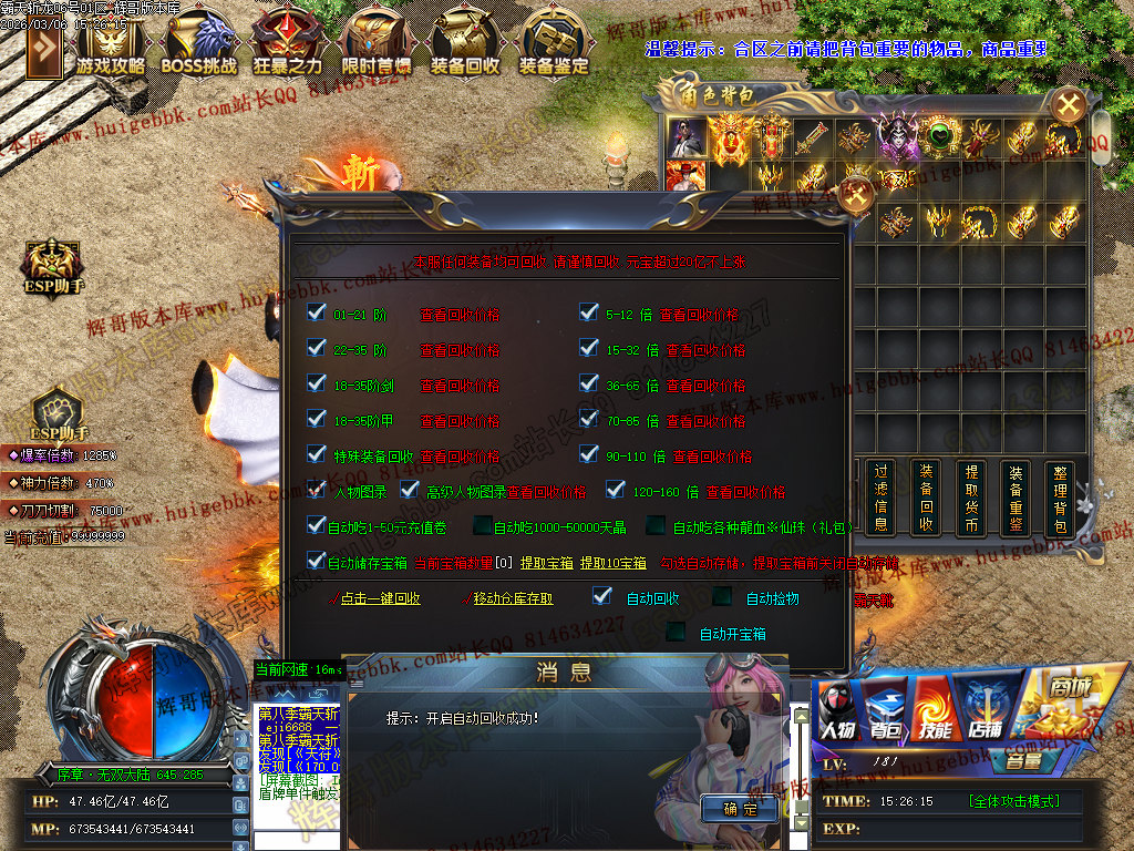 如果发现影响开区的大问题,可联系站长进行免费修复,细节问题自己处理不负责细节问题,