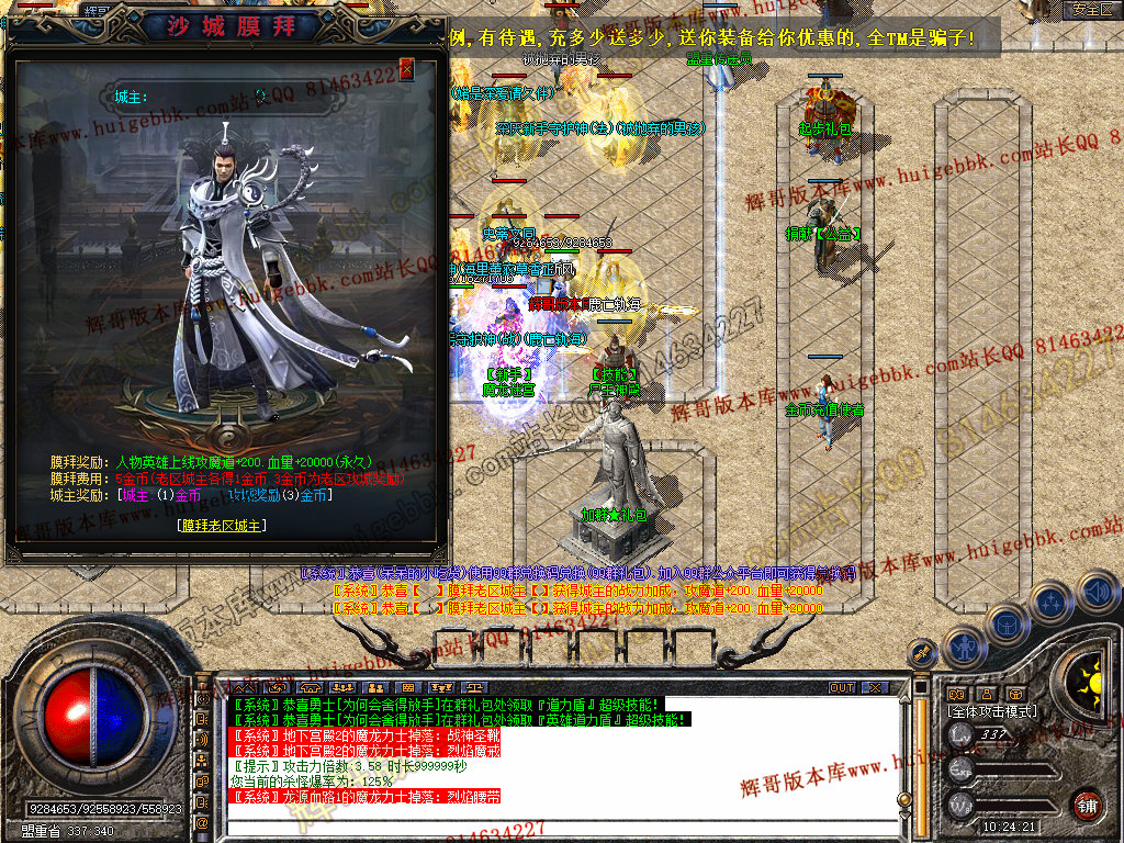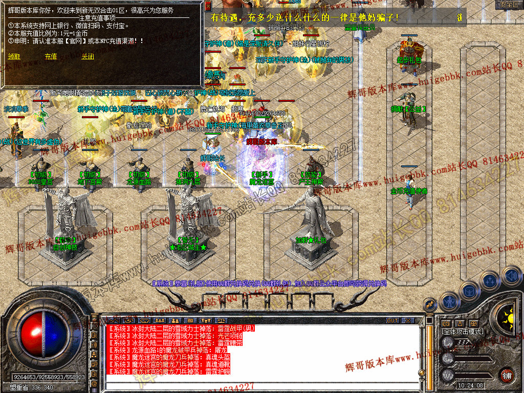 【本服特色】 :绿色公益,不卖元宝装备,一切靠打,散人超级好混,不花钱也稳定搬砖赚钱!