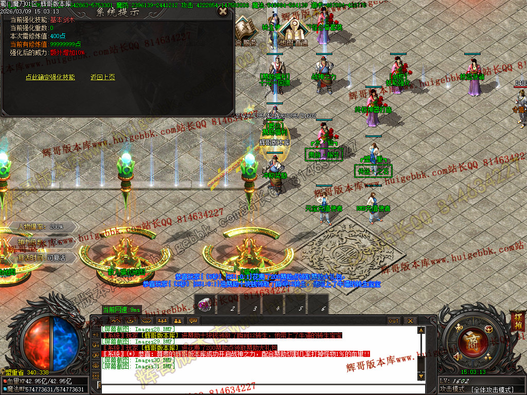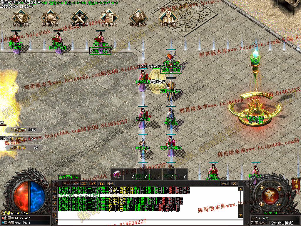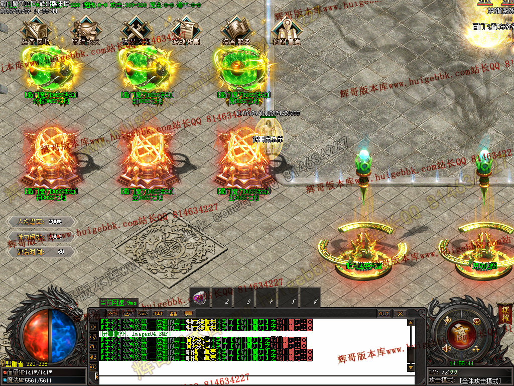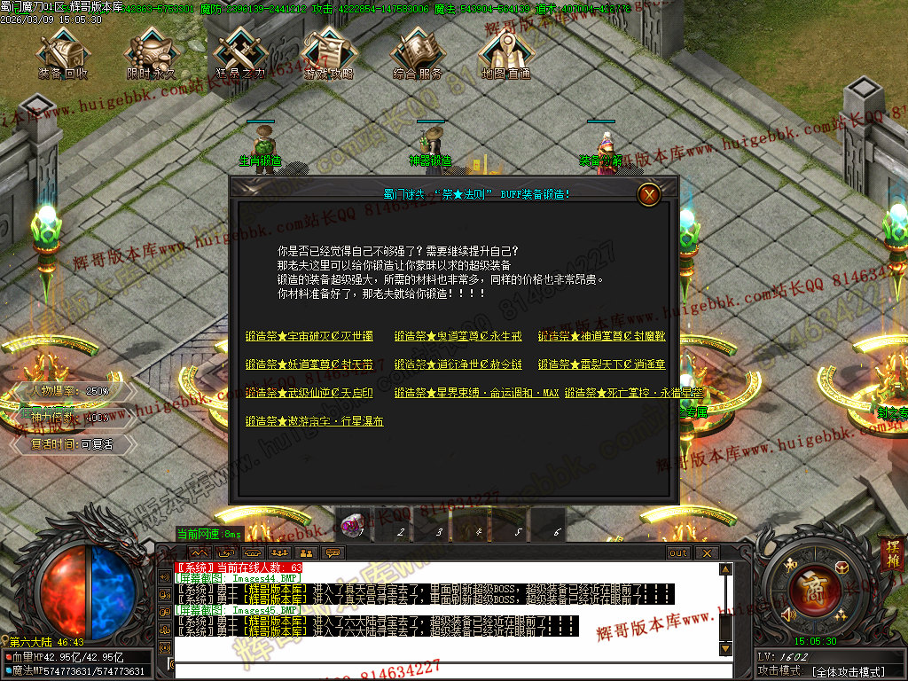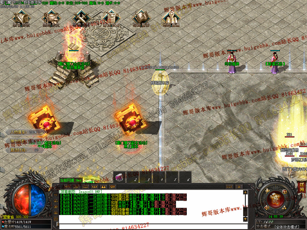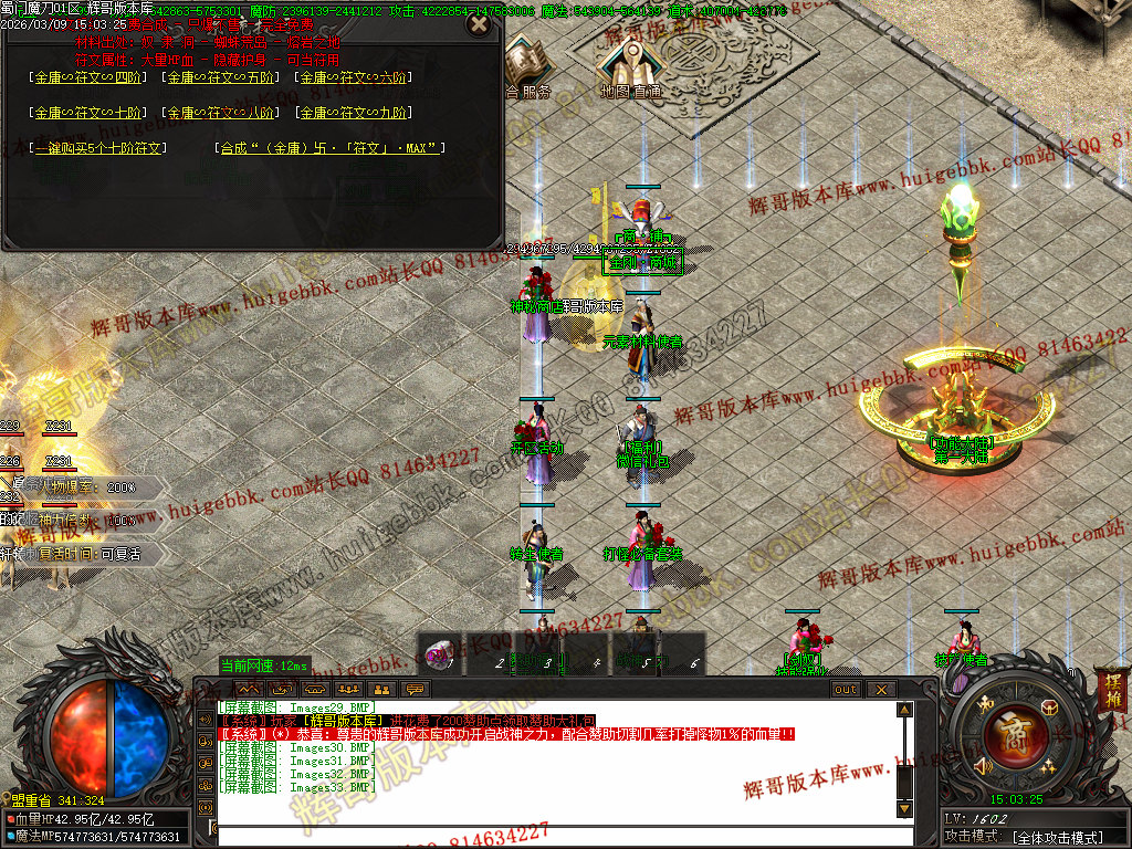 然后在土城买符文合成九阶符文,货币不够合成九阶的话 ,八阶也行,然后就去土城左边BOSS放把已刷新的BOSS一打遍;