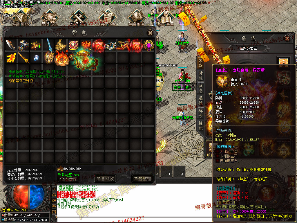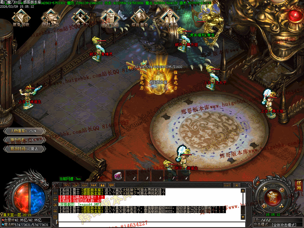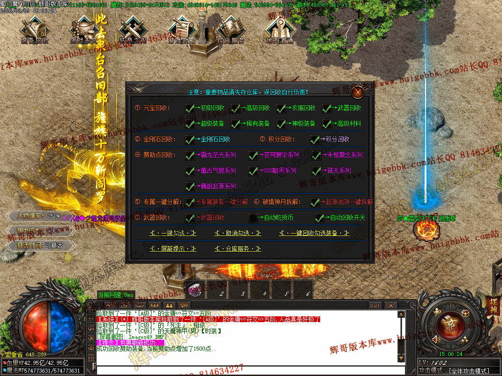 接下来散人福利走一圈,打一套腰带靴子、首饰套,就直接赞助地图撸 “九天雷主神帝 、 六天洞渊魔帝” ;