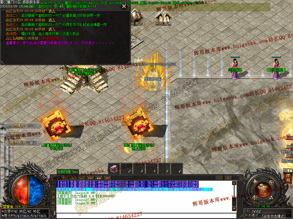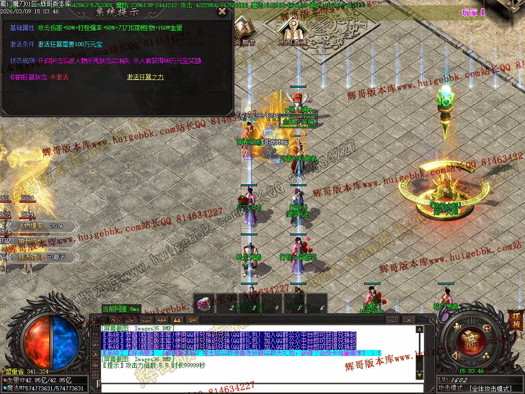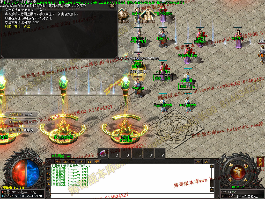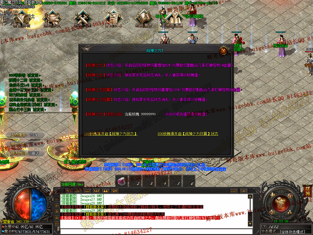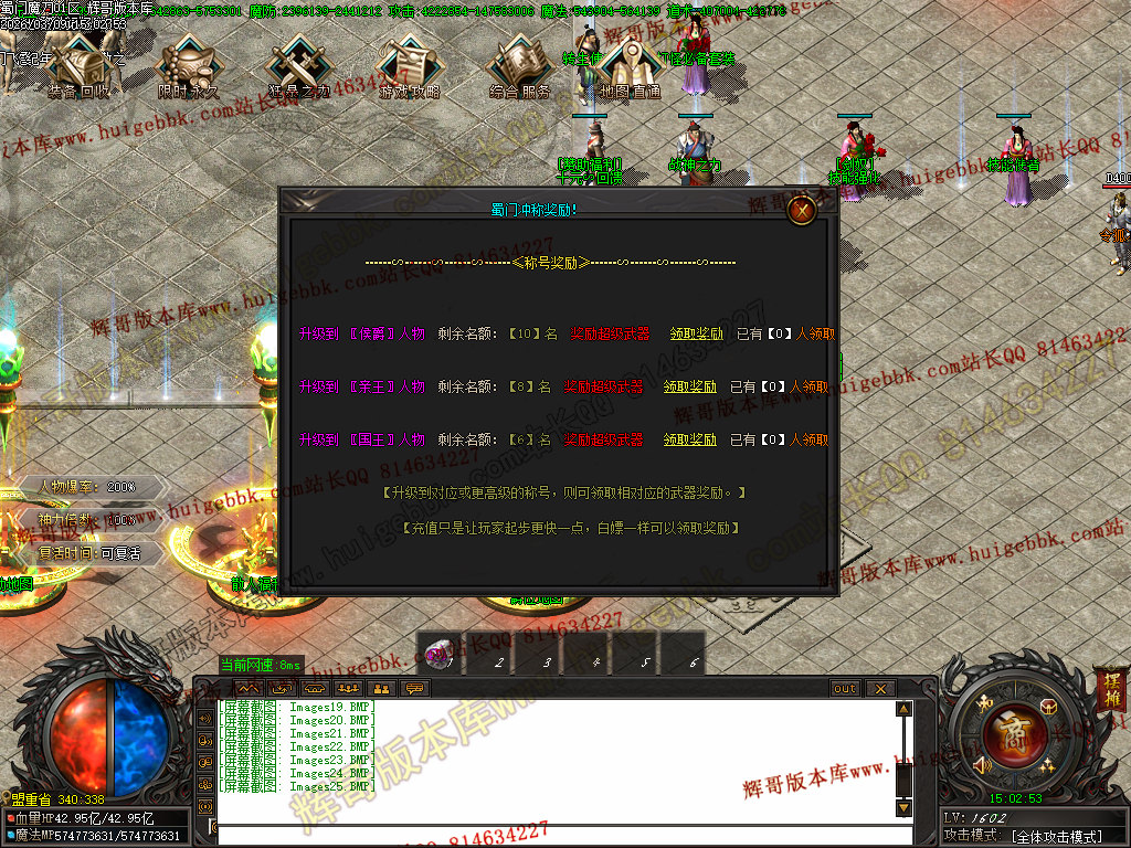 首充200元(爵位福利处升级亲王称号,领取相对应的称号武器) + 狂暴之力100万元宝,上线即可 5点几倍的爆率,1.5倍的神力;