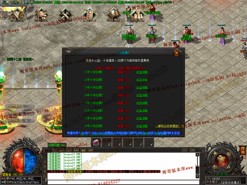 首充15 元 ,上线后还是和散人差不多领取Q群礼包,然后升级一下称号,领取个12转就散人福利地图进行撸怪;
