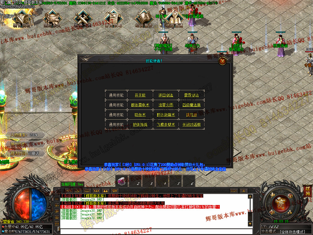技能使者出元宝购买 开天 逐日 魔法盾 护体神盾 ,斗笠使者处合成6斗笠,勋章使者、印记使者处买勋章和印记;