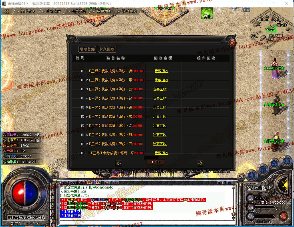 如果发现影响开区的大问题,可联系站长进行免费修复,细节问题自己处理不负责细节问题,