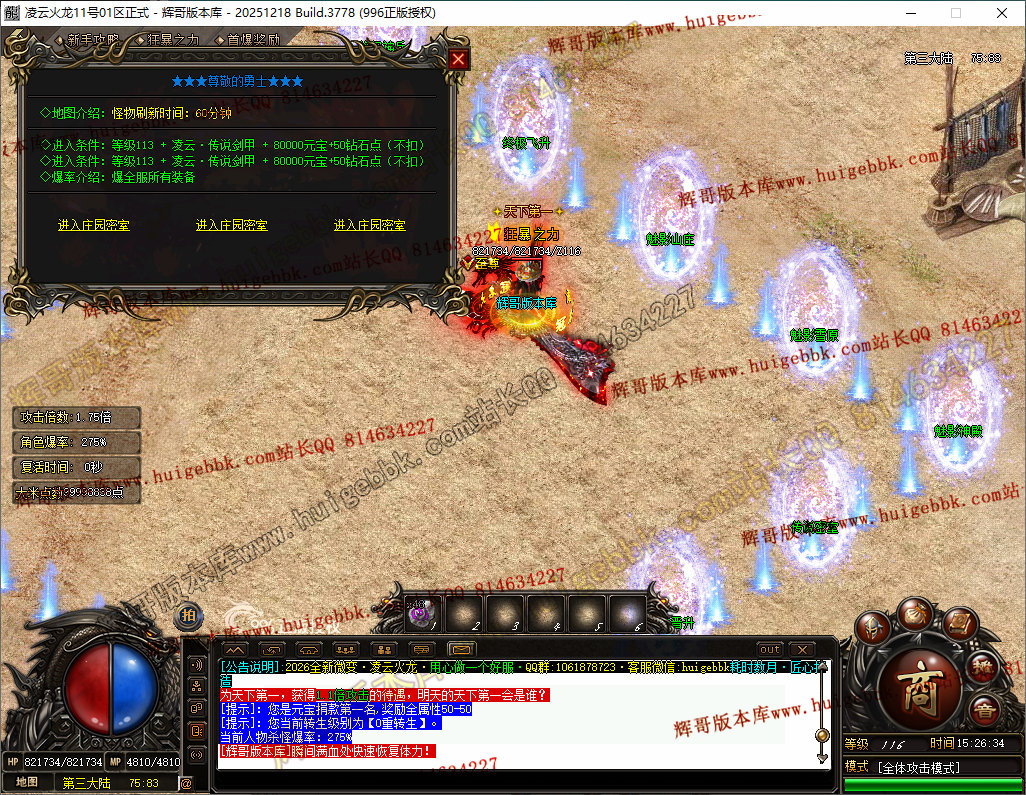 福利打宝地图,快速升至111级,带上终极勋章就是112级,起步快人百倍